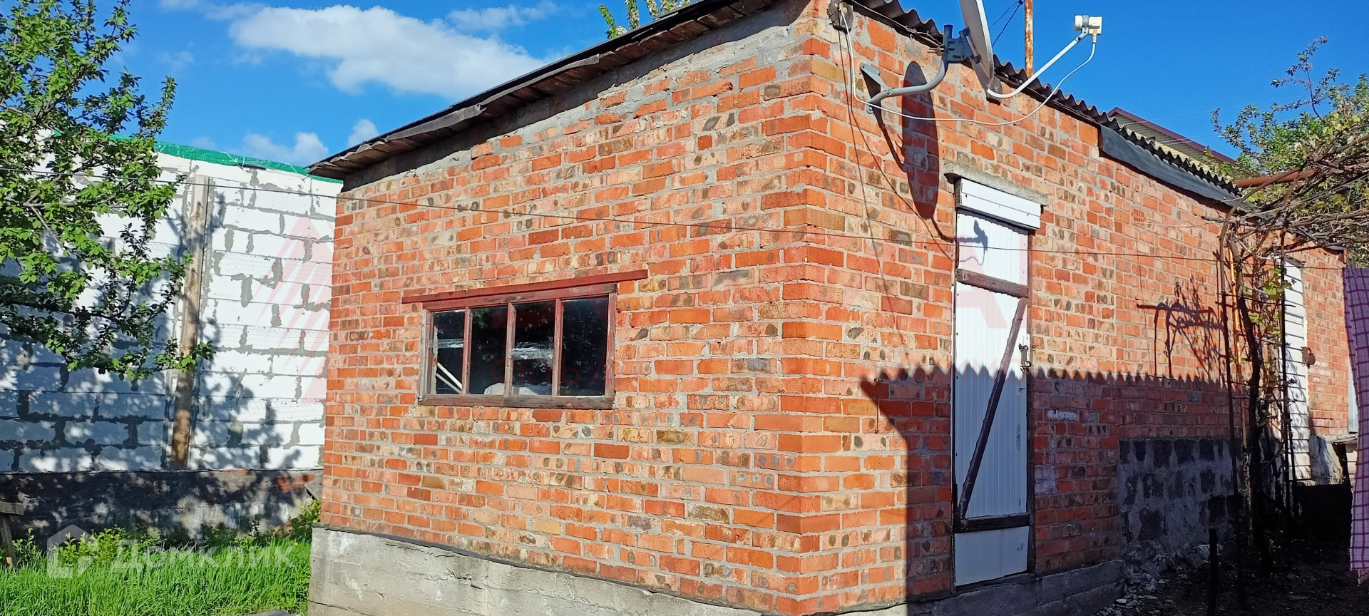 Арт. 64039091 Дом 43,4 2м обшит сайдингом на участке 5 соток, 25 м по фасаду. Прихожая, просторная кухня, четыре комнаты, косметический ремонт, состояние жилое. Участок ухожен, имеются хозпостройки, кирпичный гараж, помещение для мастерской.