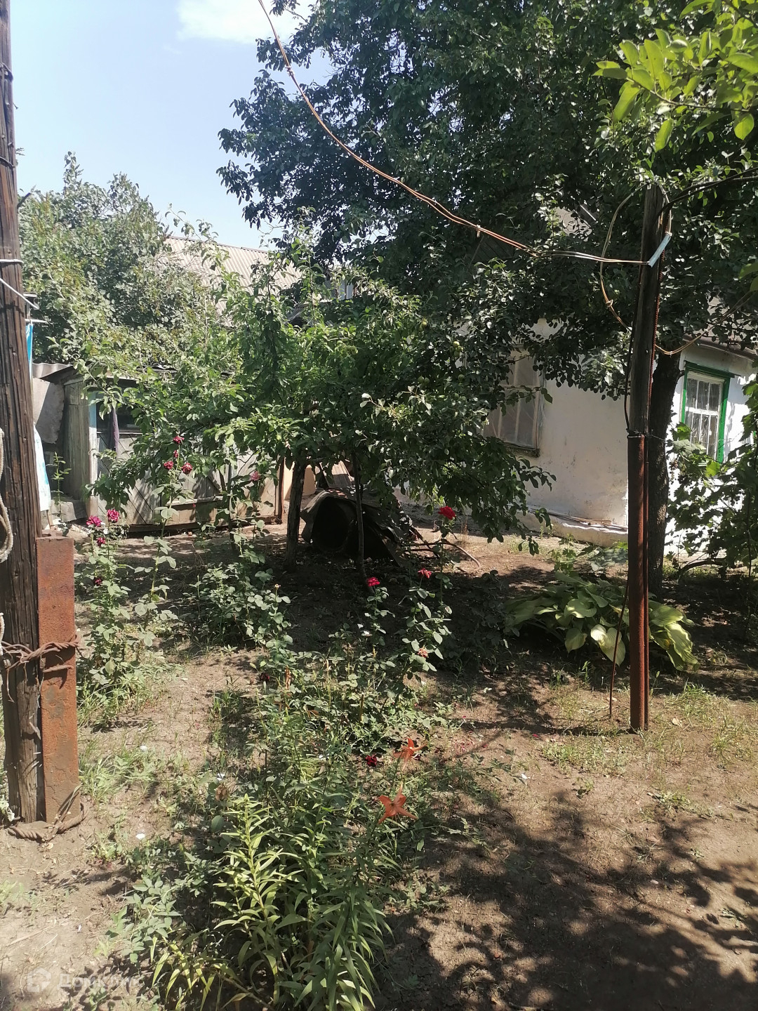 О ДОМЕ :  Дом саманный, обложен кирпичем. Свет, вода, газ заведены. Отопление газ форсунка. Есть жилая кухня с газом. Удобства во дворе. Земля в собственности, межевание есть.