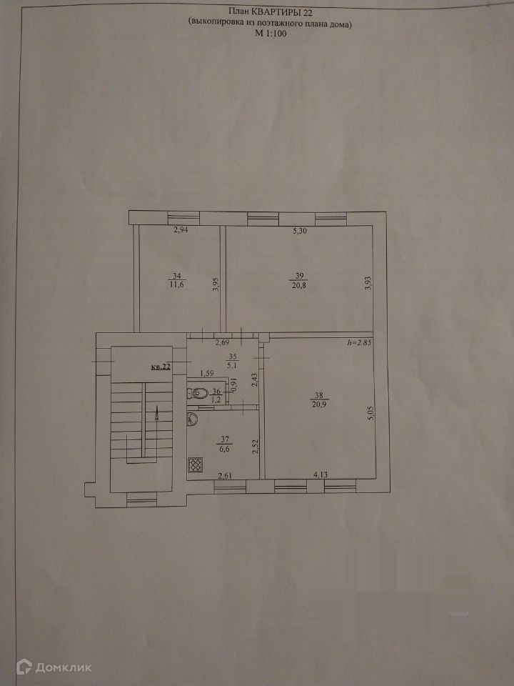 Высота потолков 2.8 м