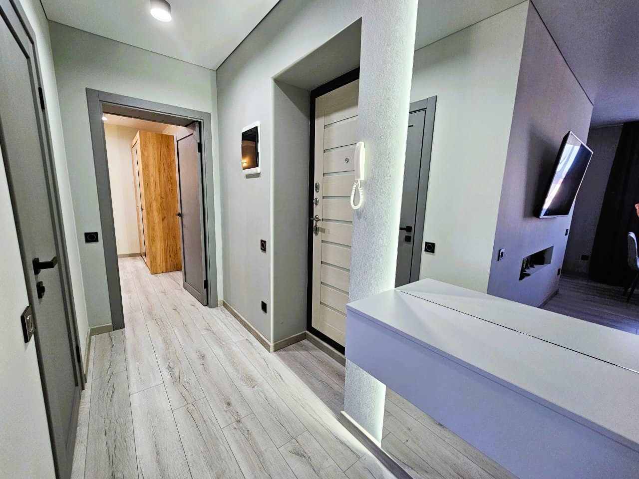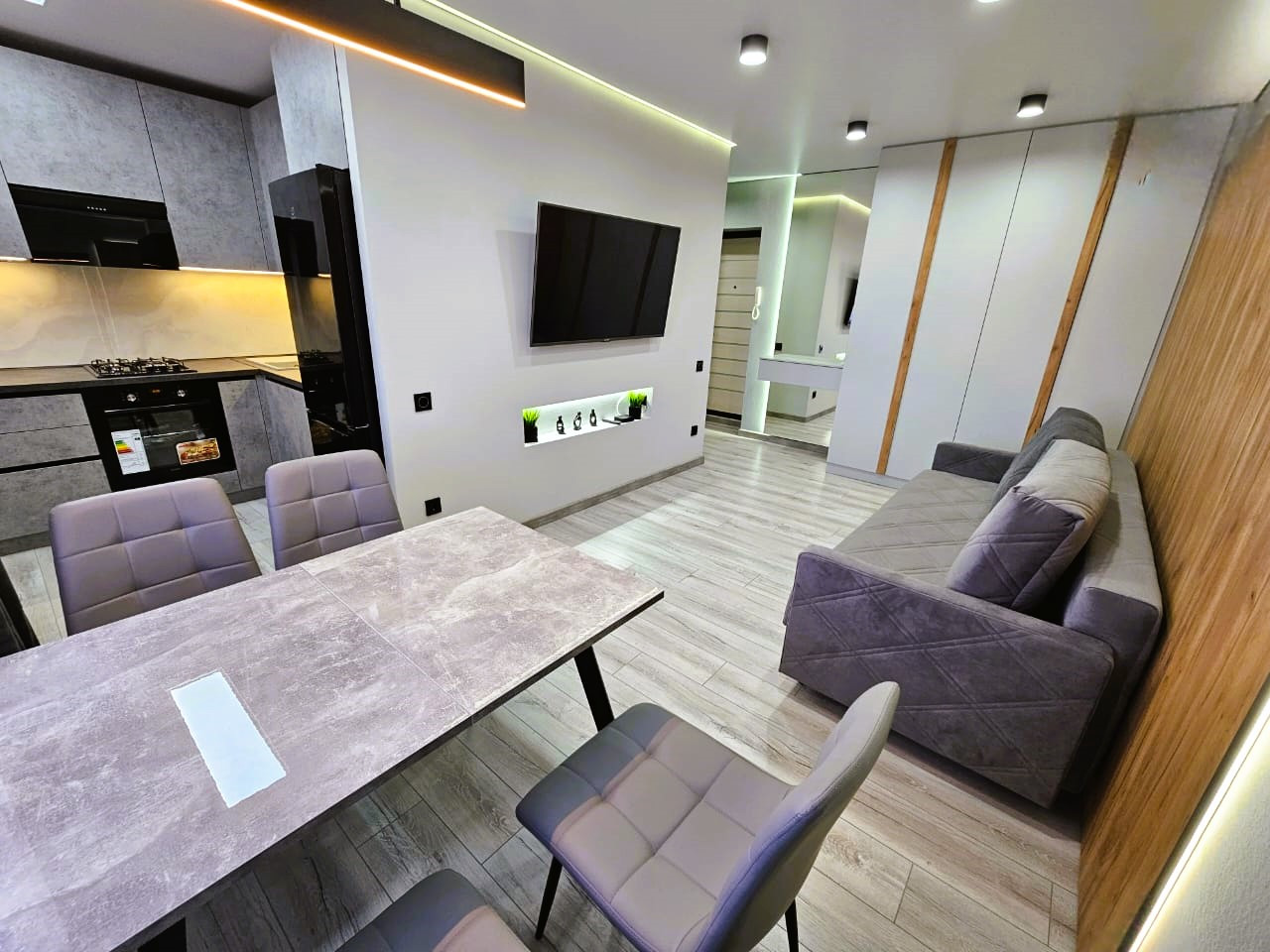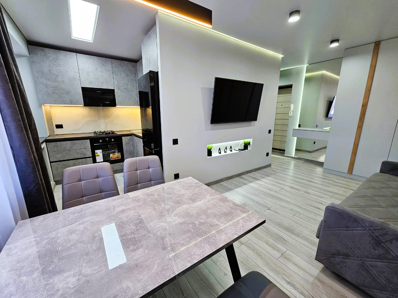 В квартире продумано всё ростовскими дизайнерами до мелочей, каждая деталь в отделке и интерьере сочетается ИДЕАЛЬНО. Все материалы, фурнитура, освещение из последних коллекций ведущих производителей. Квартиру не опишешь полностью, если Ваши мечты совпадают с Вашими возможностями, её надо посмотреть  и со входа окунуться в атмосферу этой прекрасной уютной атмосферы в квартире, которая подчёркнута современной системой освещения, которой дизайнер уделил особое внимание.