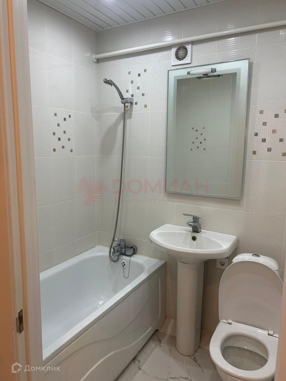 В ванной комнате выполнен качественный сантехнический ремонт, имеется душевая кабина, раковина и унитаз с современным дизайном.
