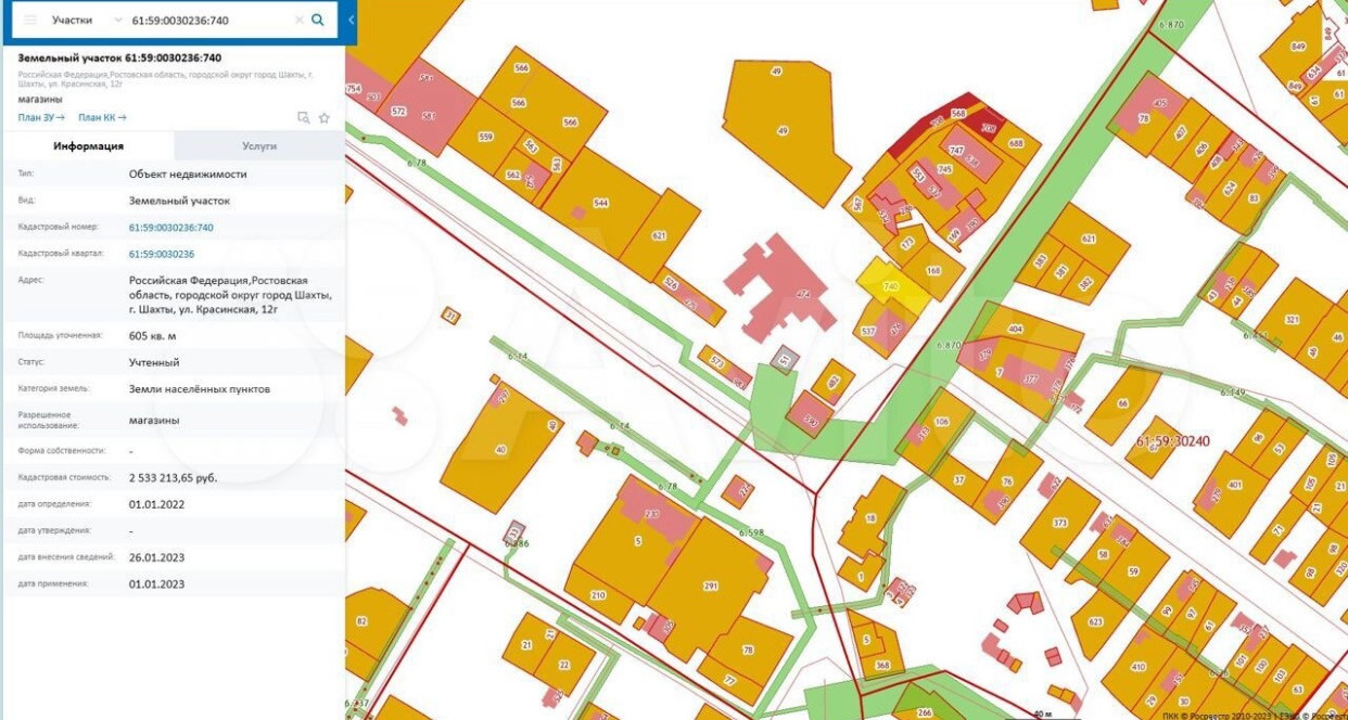 Продается земельный участок коммерческого назначения, разрушенное использование «магазины», кадастровый номер 61:59:0030236:740. Расположен г. Шахты, Ррстовской области, ул Красинская 12а.