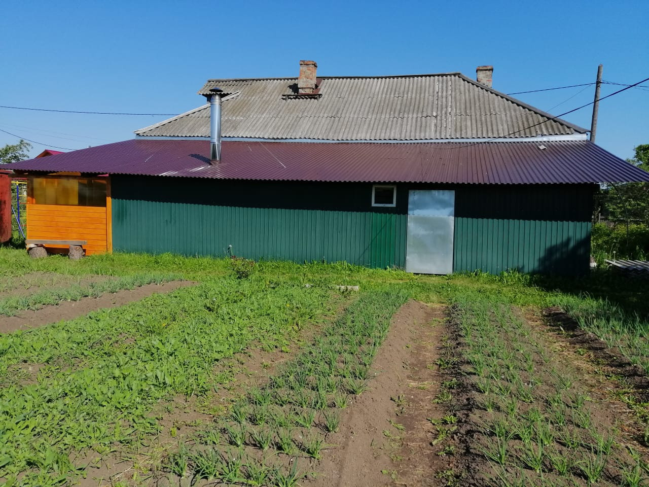 Частный дом. Баня. Печное отопление. Ванна и туалет совмещенные. Бойлер 100 л. Окна пластиковые. Огород ухожен, 2 теплицы.