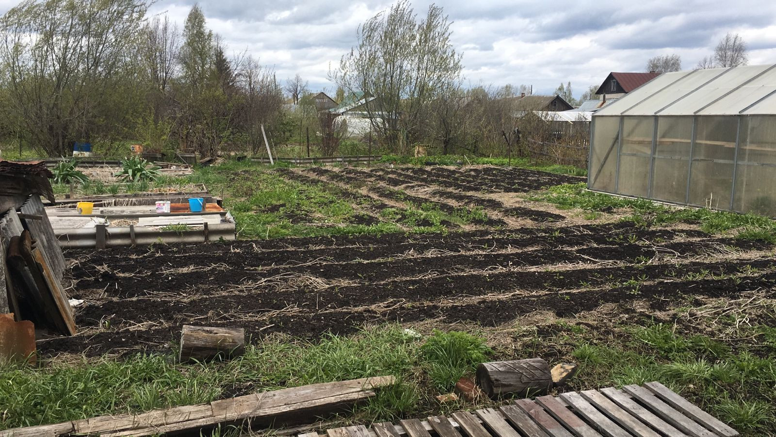 Огород ухоженный,  много плодовых деревьев и кустов