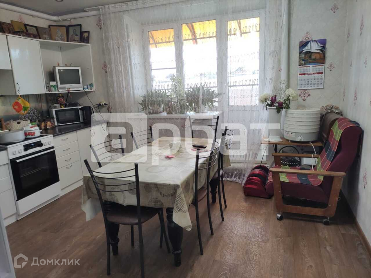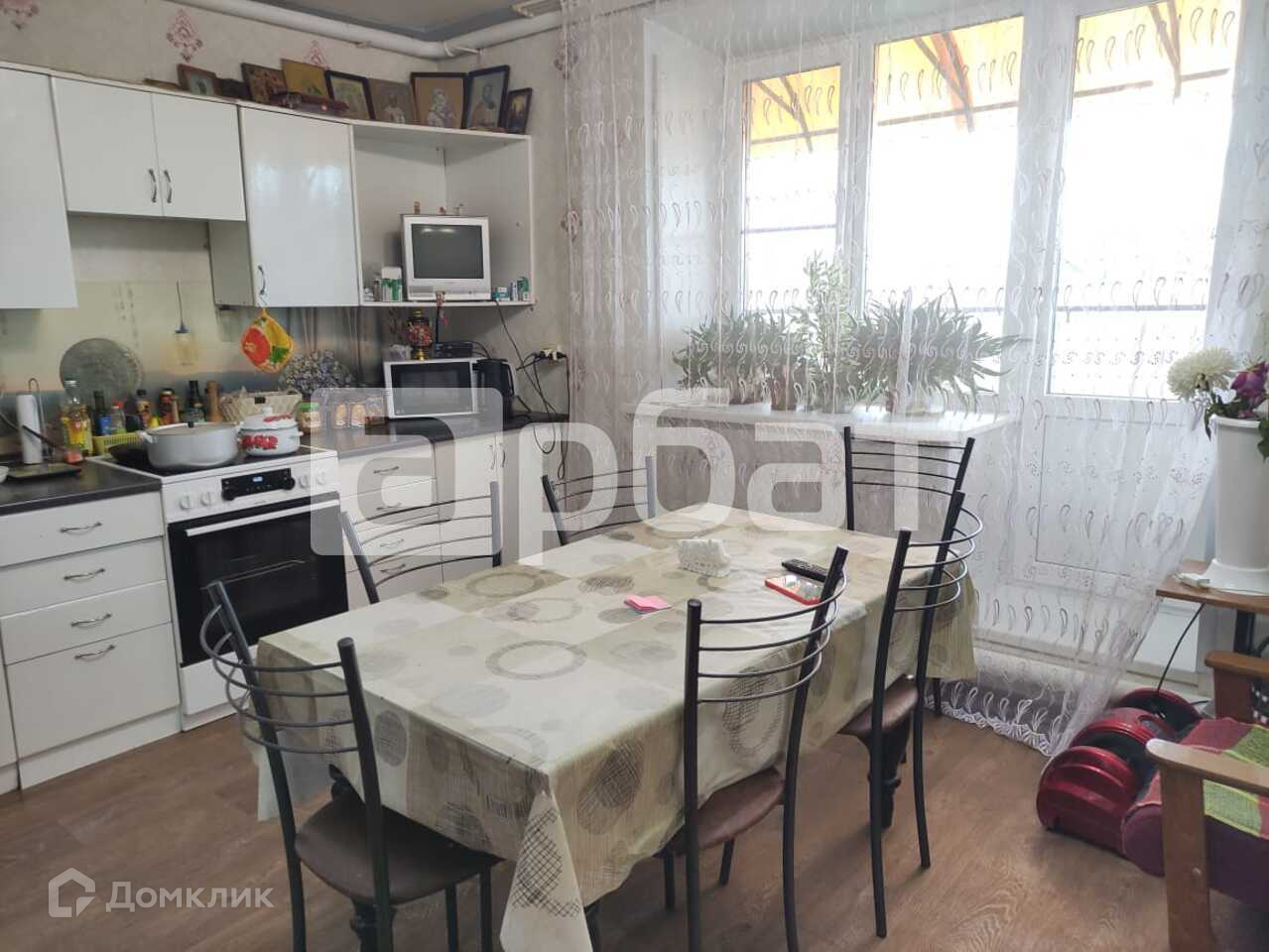 БАЛКОН большой, выход из кухни, навес поликарбонат.