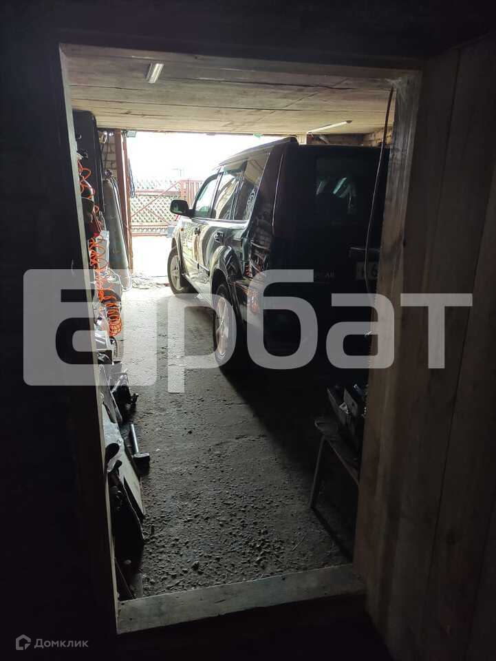 ГАРАЖ на уровне подвального помещения с выходом из дома. Двери металлические. Есть стеллажи для инструментов.