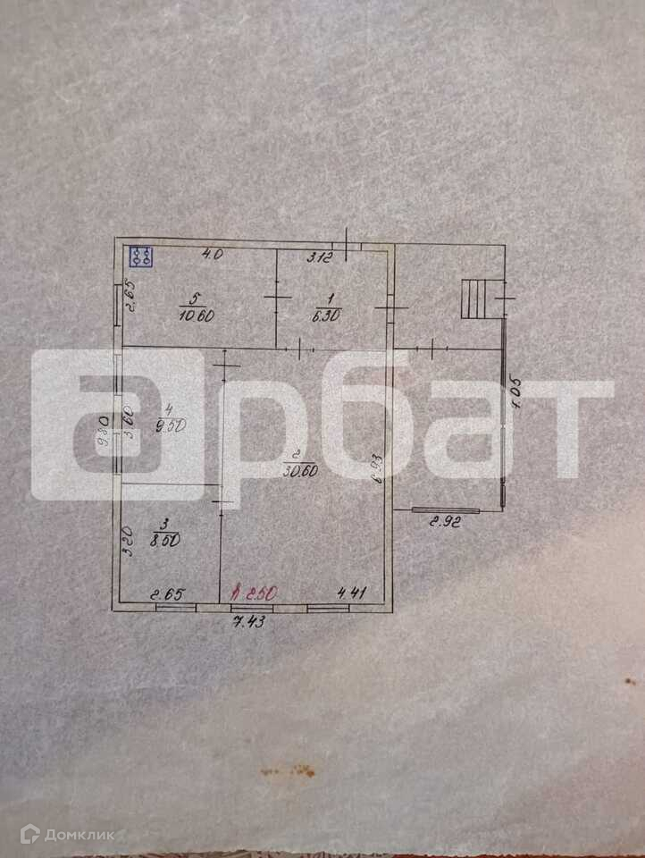 Общая площадь 57.5 м2