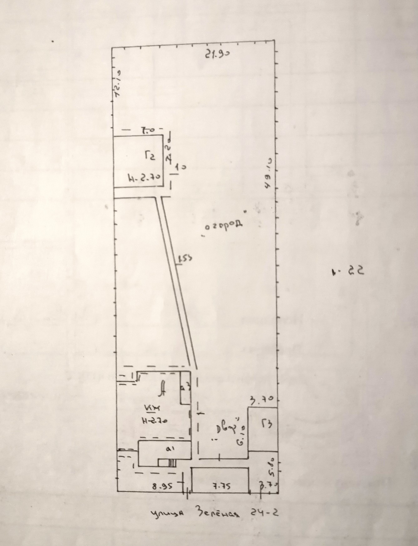 На территории - ж/б гараж со смотровой ямой, кирпичное хоз.помещение, есть фундамент под теплицу. На участке много плодовых деревьев и кустарников. Осенью земля была перепахана для весенних посадок. Имеется скважина для неограниченного полива в летний период.