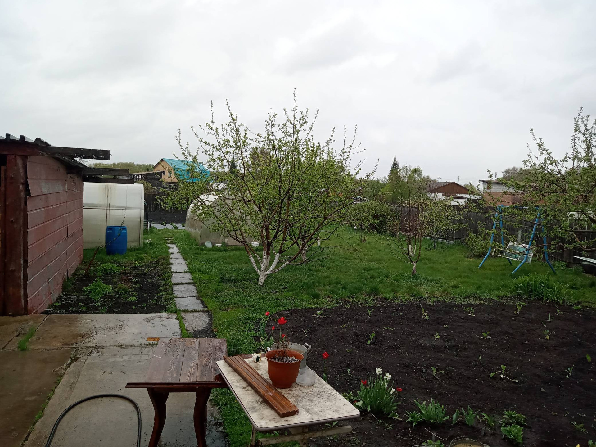 Продается 4 комнатная квартира в двухкомнатном доме. Окна ПВХ, межкомнатные двери - натуральное дерево. На участке Гараж со смотровой ямой, Баня,  хоз.постройки, 2 теплицы, двор уложен плитами, большой сад с плодоносящими деревьями и ягодными кустарниками, ухоженный огород.