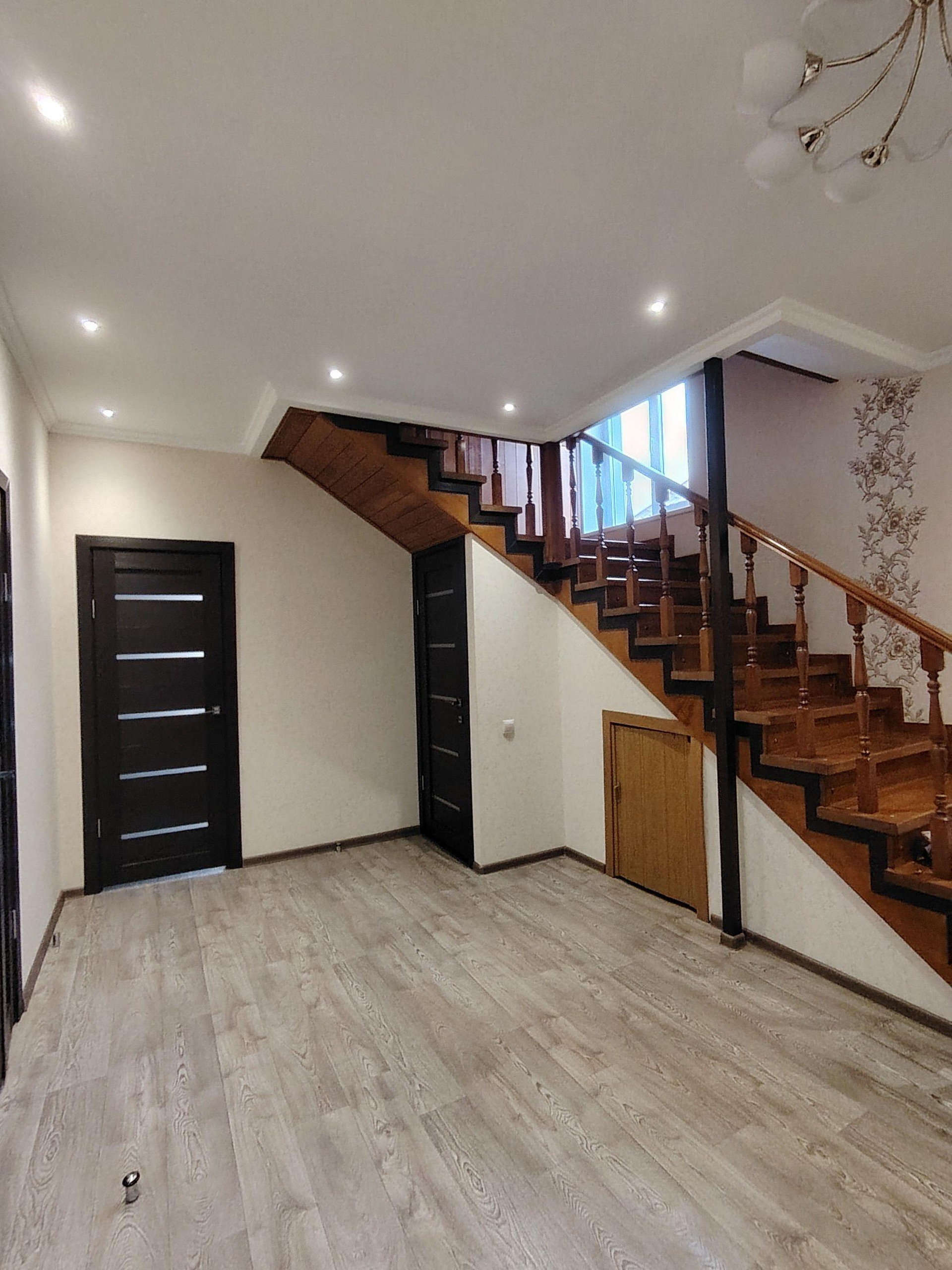 Продаётся 2 х этажный благоустроенный дом, все коммуникации централизованные. На участке есть большой гараж, баня, теплица, плодово-ягодные деревья. При входе в дом мы увидим просторный холл, из него вход в большую гостиную совмещенную со столовой, где есть удобный вход на кухню. В доме два сан. узла, что  удобно для большой семьи. На 2 ом этаже размещены три комнаты - спальни.