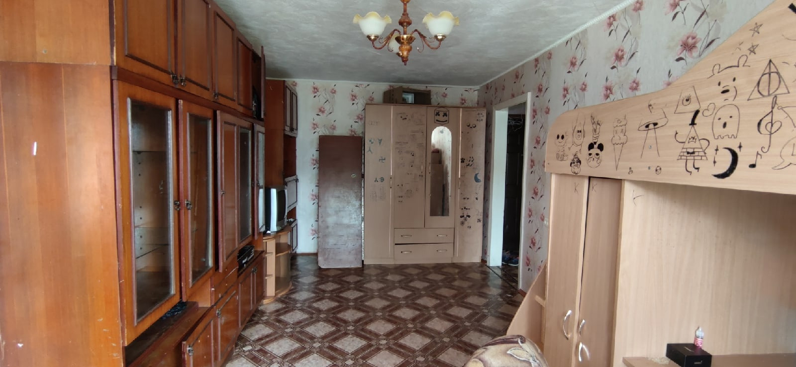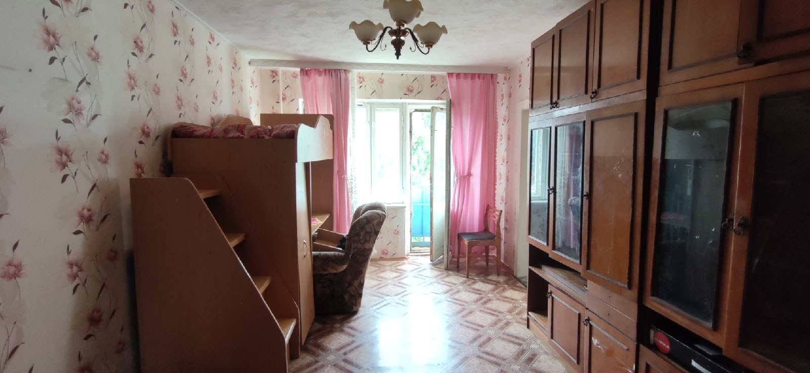 продам 2комнатную квартиру на 4 этаже в удовлетворительном состоянии: окна деревянные, душ, одна комната проходная