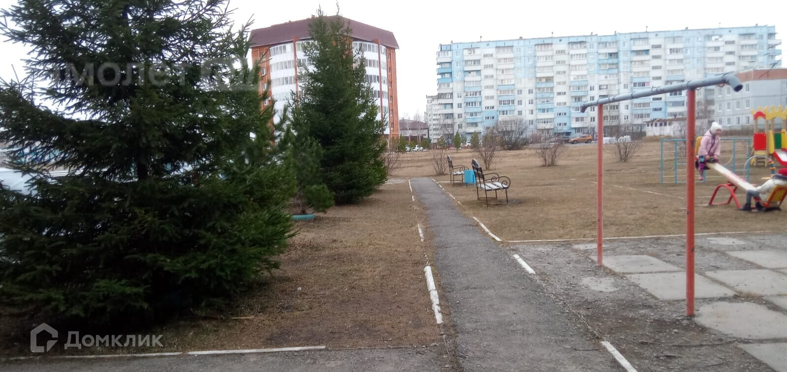 Во дворе детская площадка, много парковочных мест.