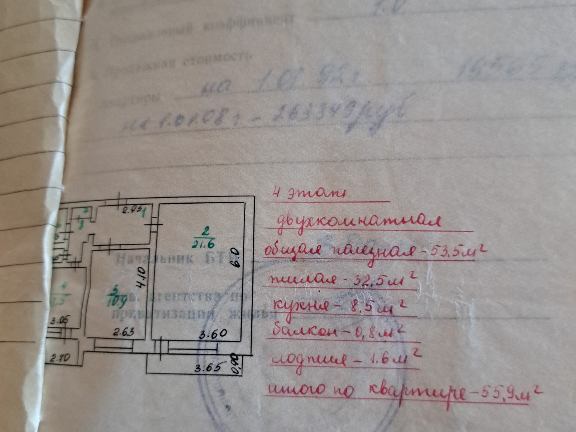 Общая площадь 53.5 м2