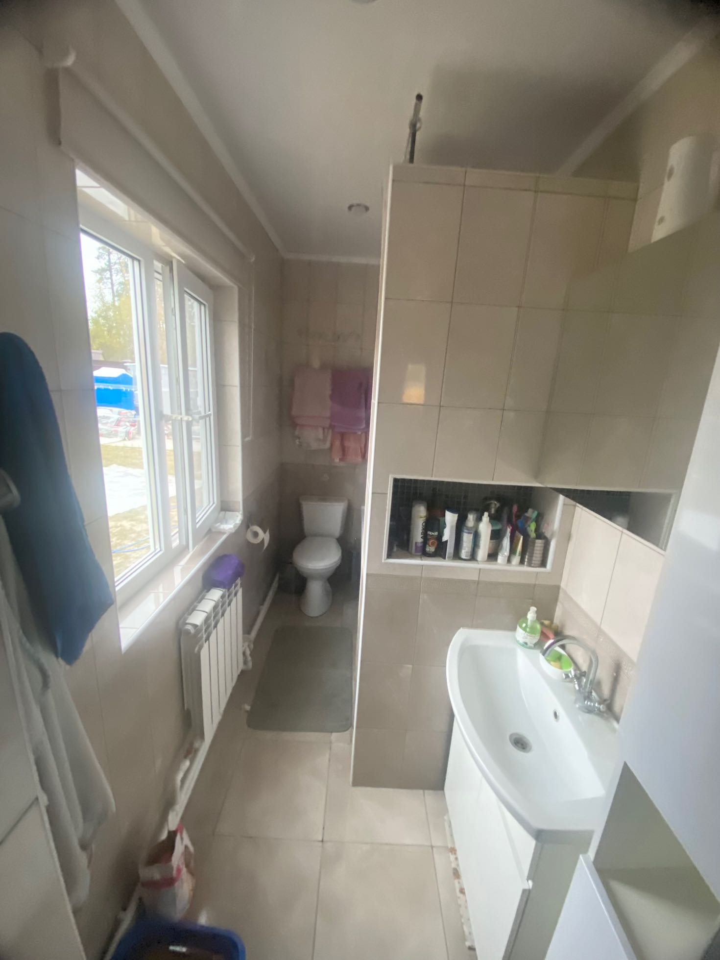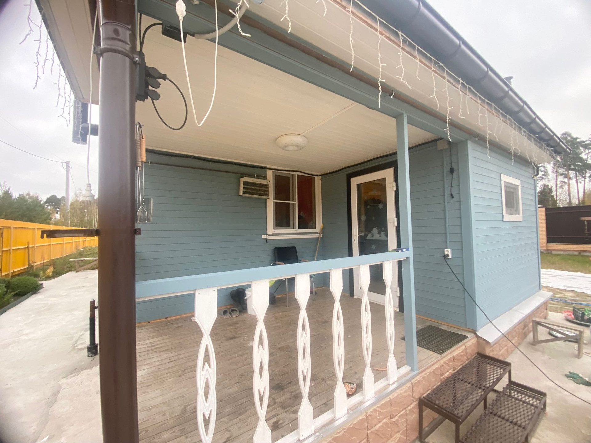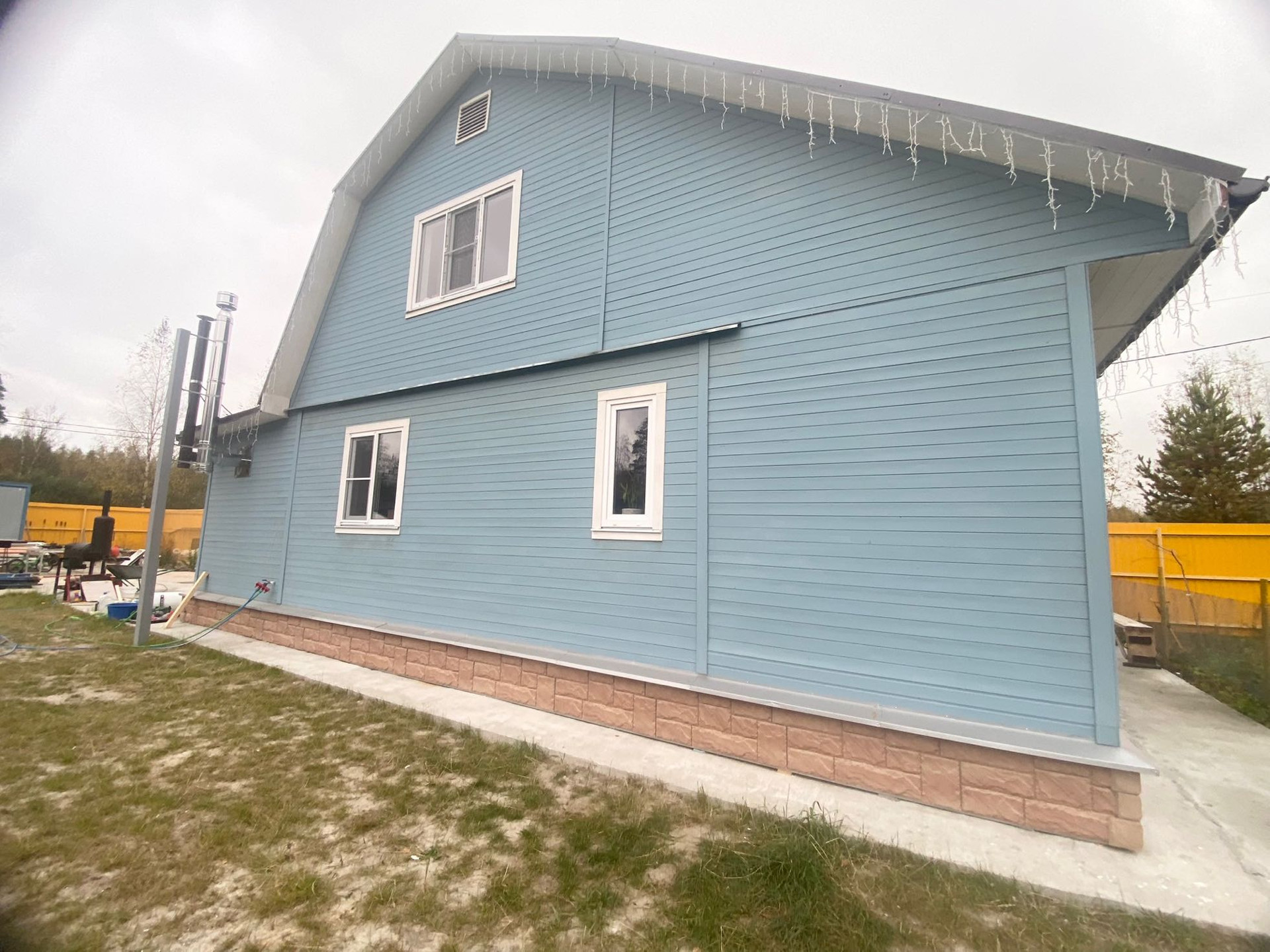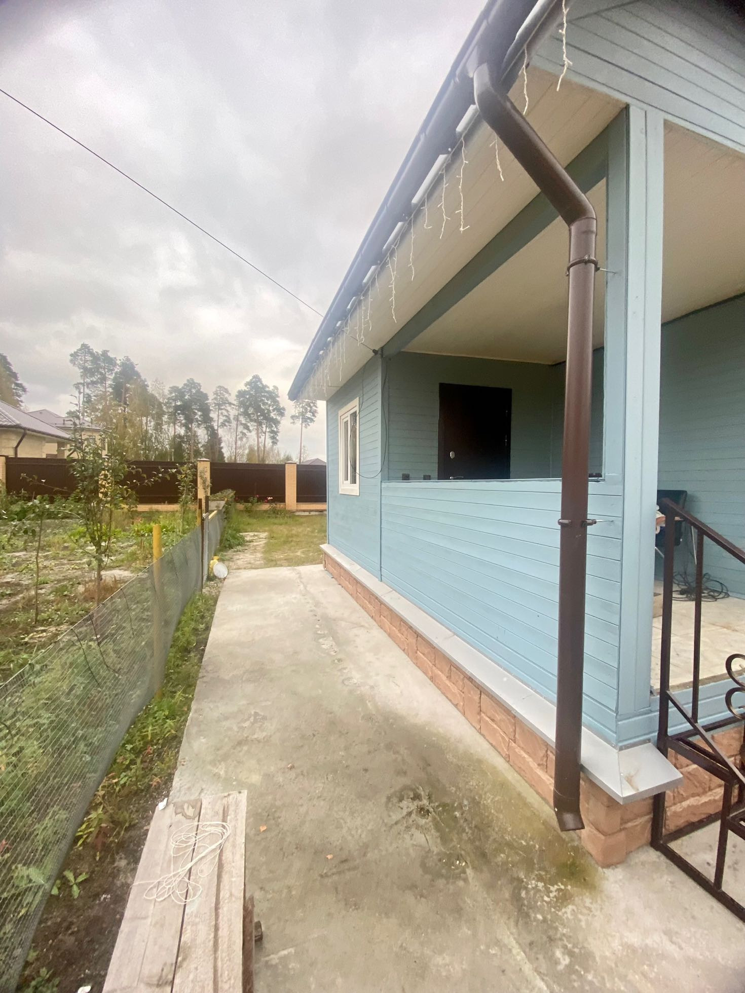Перед домом залита бетонная стяжка для укладки тротуарной плитки.