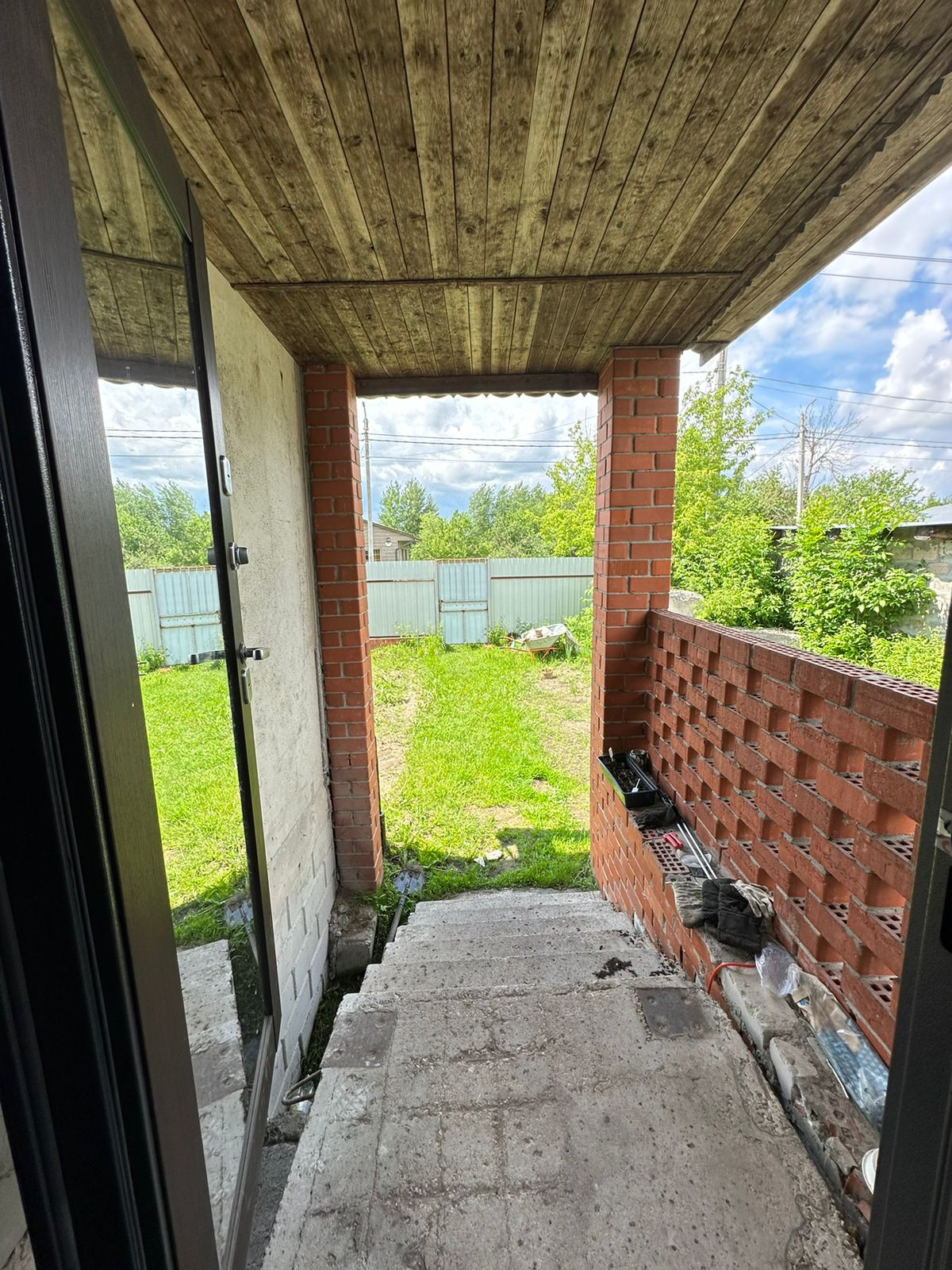 Огорожен профлистом, имеются ворота для заезда автотранспорта на участок.