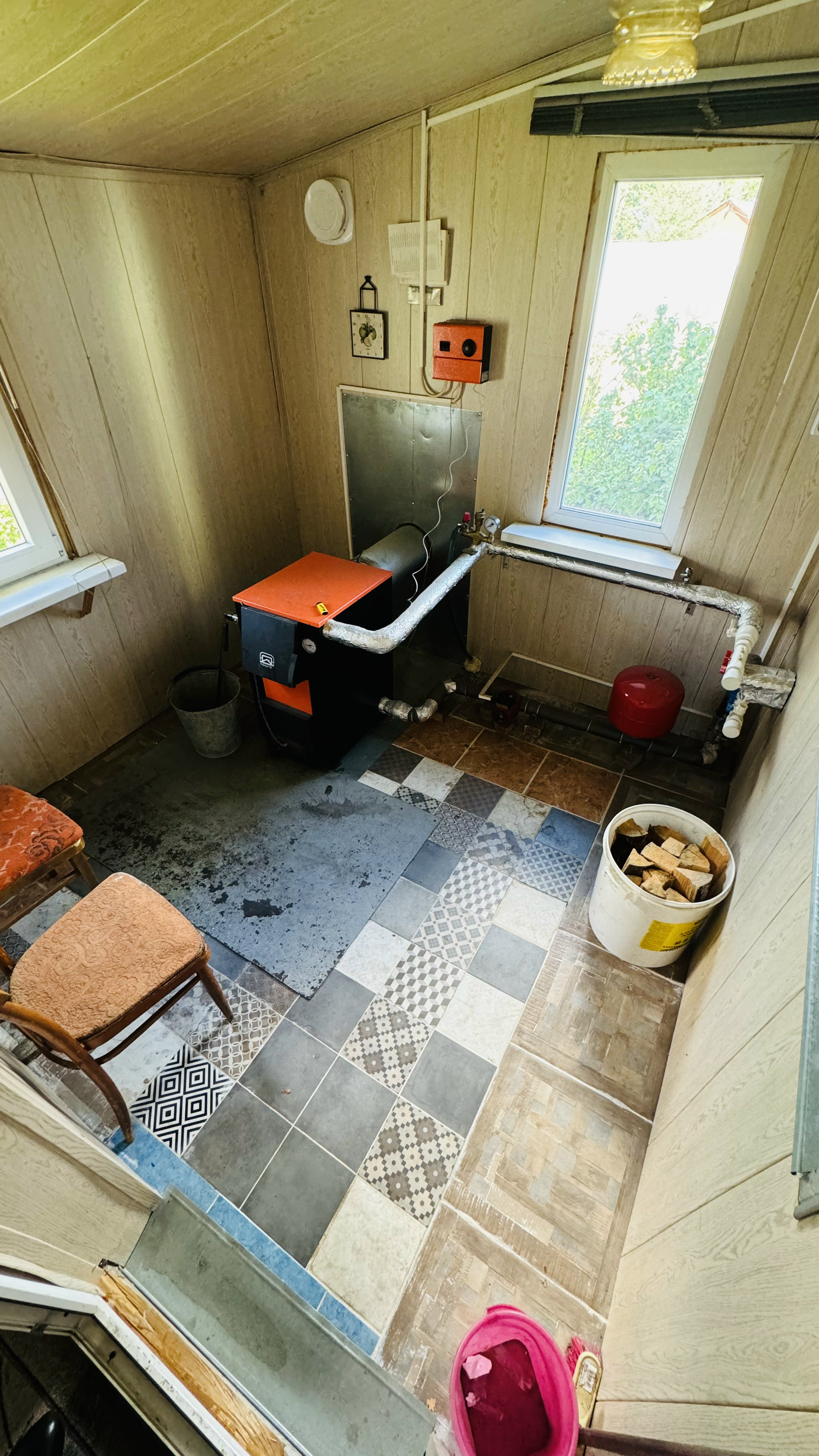 ✅Универсальный обогревающий котел, способный работать от газа, электричества и дров. В систему залит антифриз, который не замёрзнет зимой, если потребуется отключить отопление.