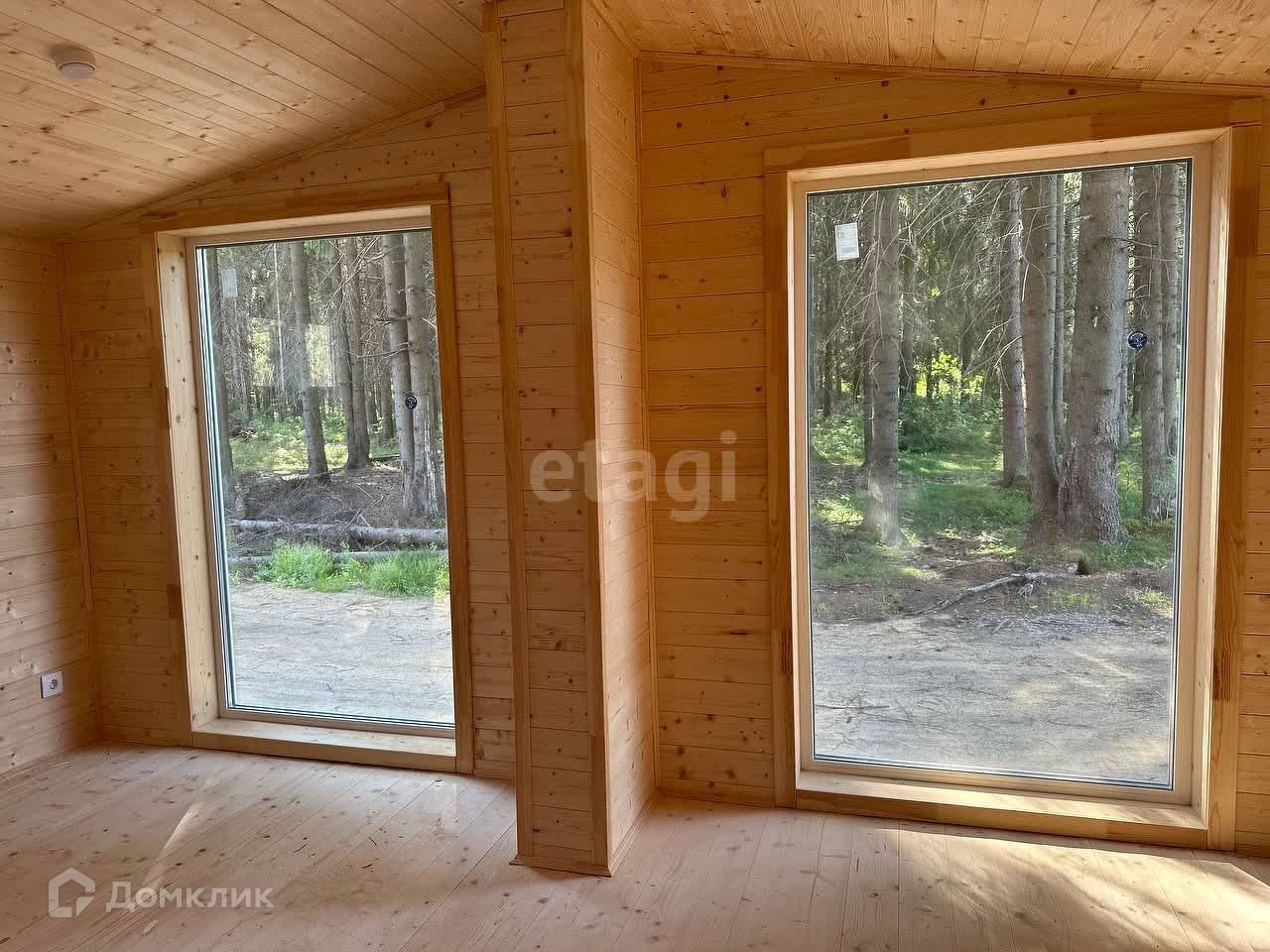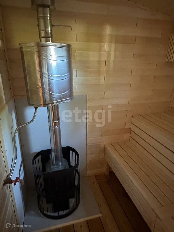 Участок ровный, сухой, удобный заезд. На участке возведён модульный жилой дом-баня (зарегистрирован), в сауне установлена дровяная печь-каменка. Дом расположен в узкой части участка, есть место для строительства большого дома. Подключено электричество 15 кВт, газовая труба по границе участка.