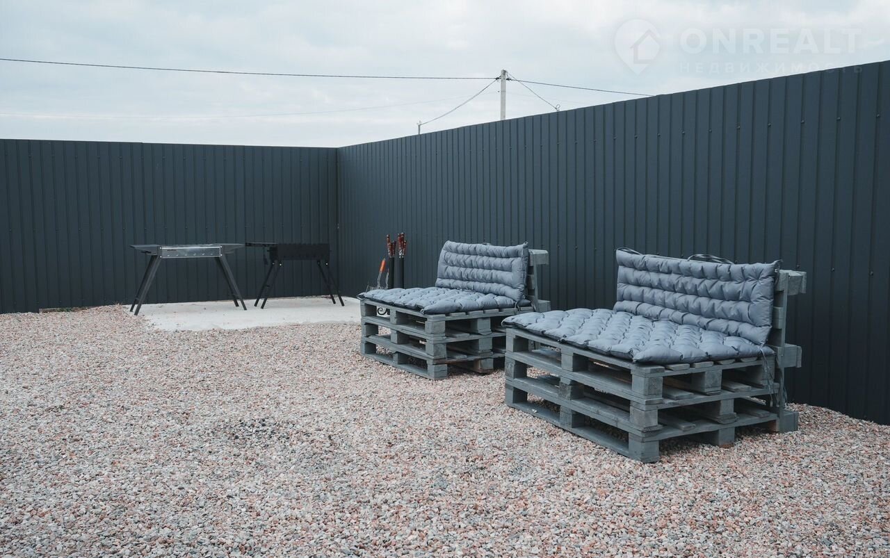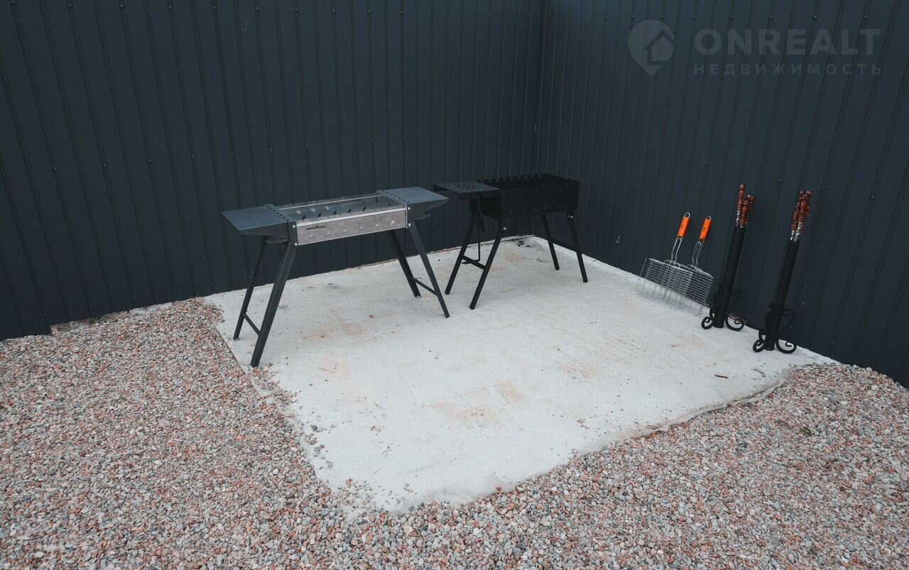 У домика есть мангальная зона, большая терраса оборудованная мебелью, парковка для авто.