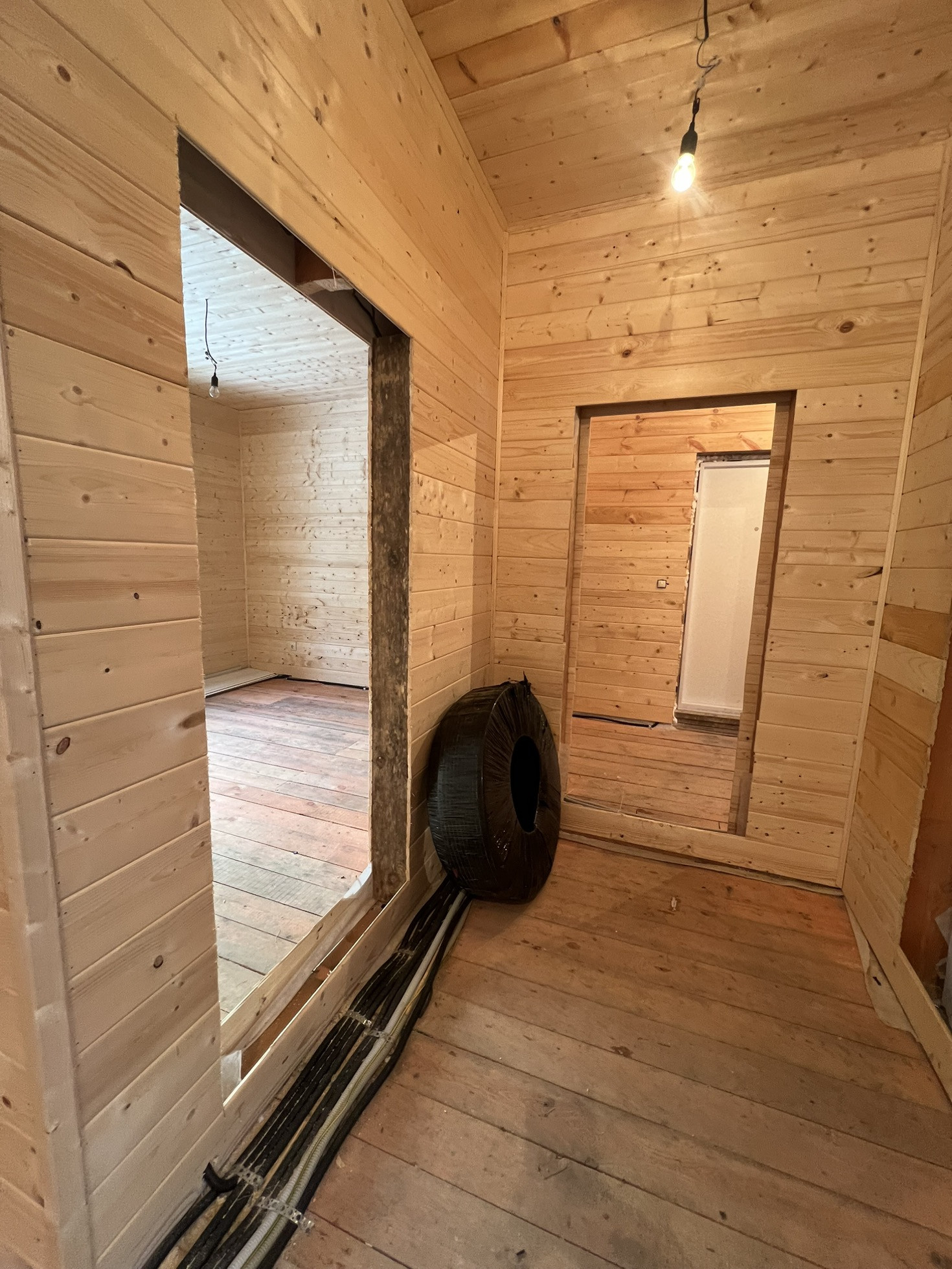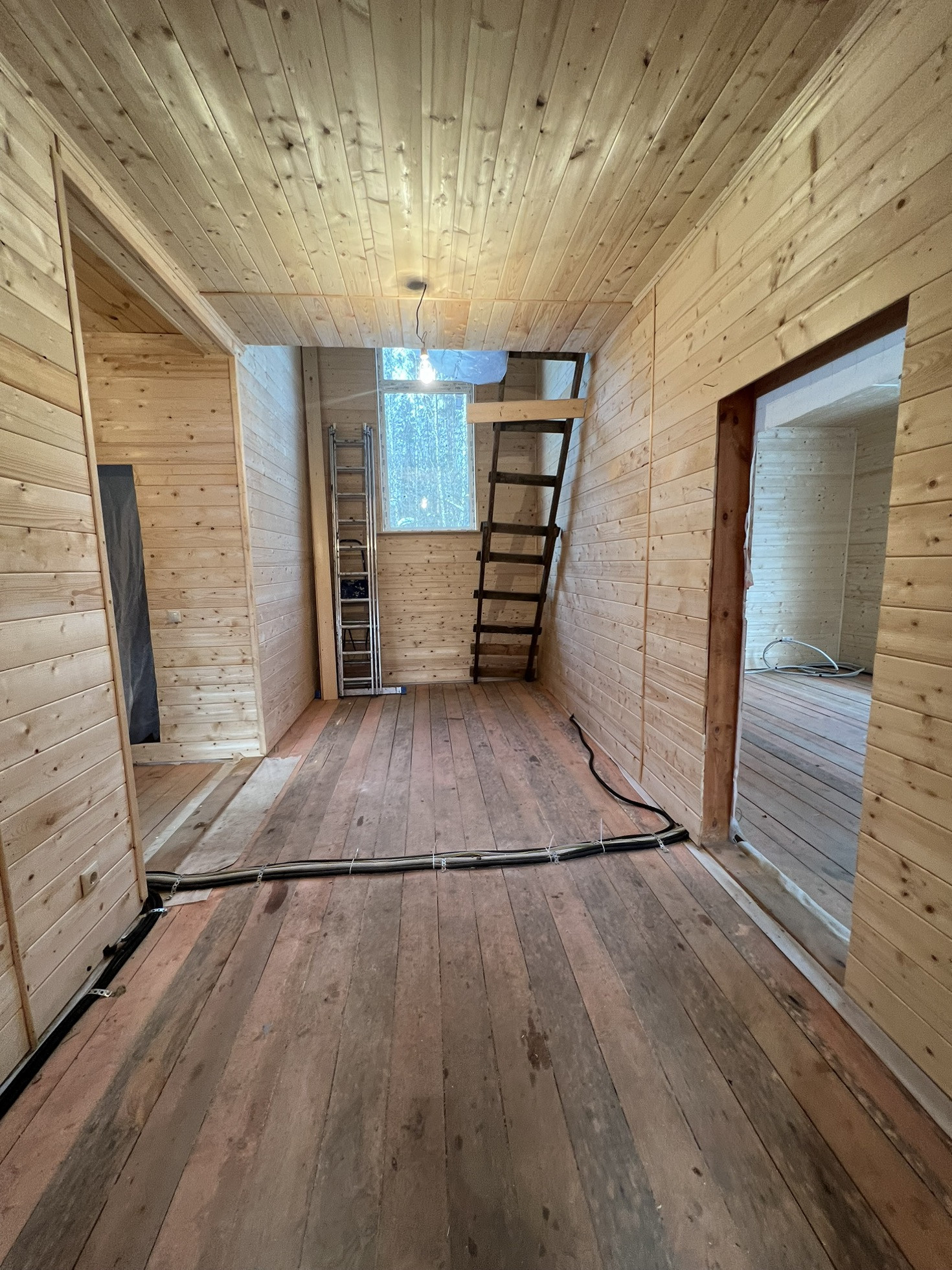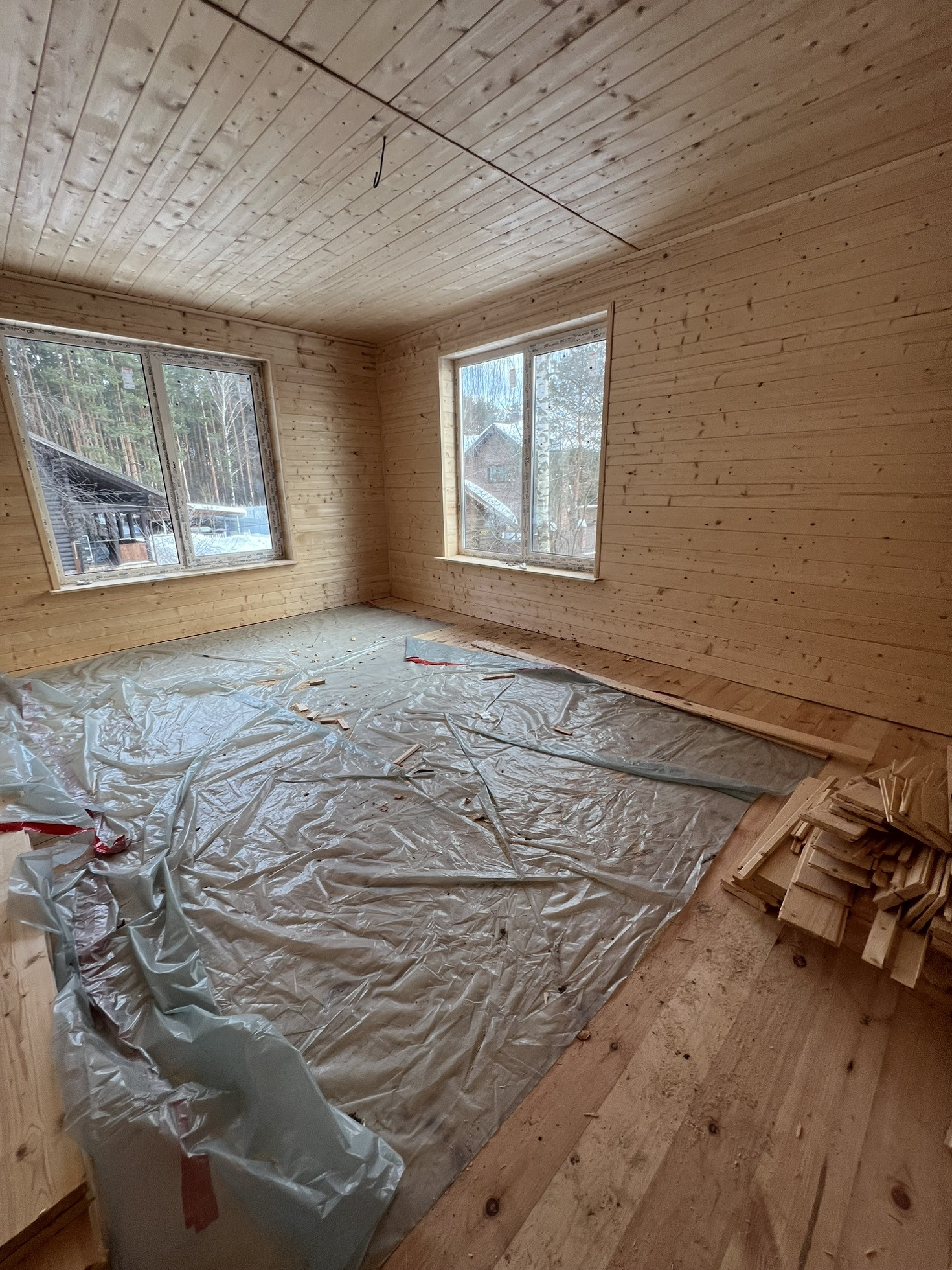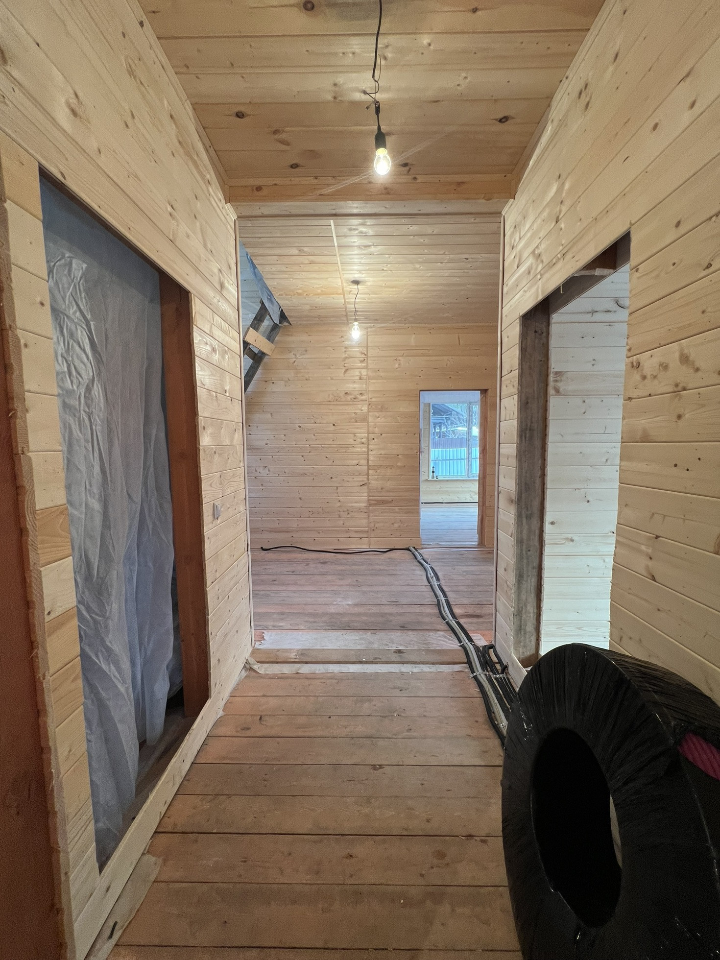 Дом каркасный, утеплен. Большая кухня гостиная, и четыре комнаты жилые (одна на первом этаже, и три на втором этаже).