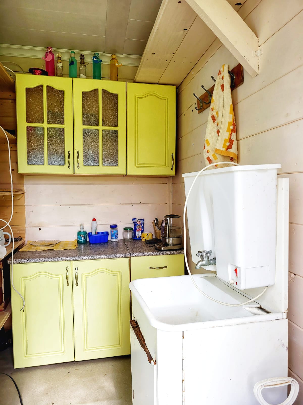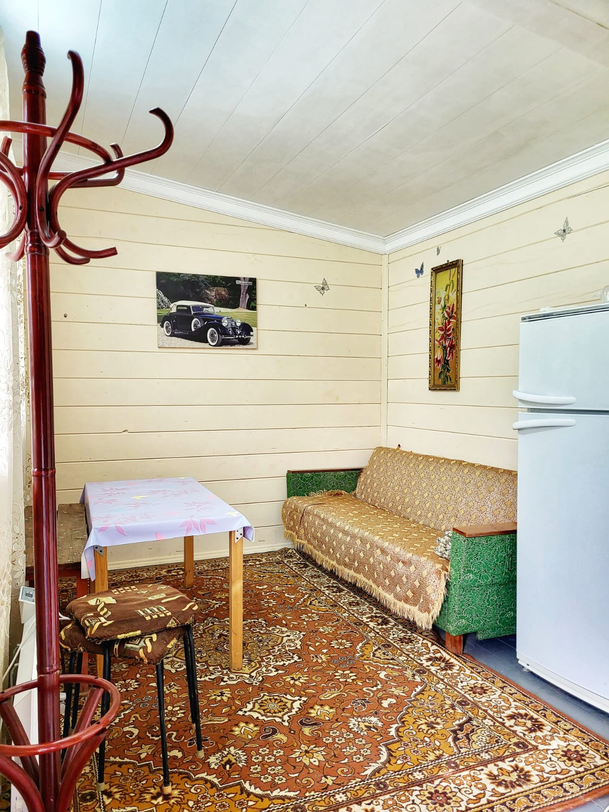 Внешние и внутренние стены обшиты имитацией бруса.
