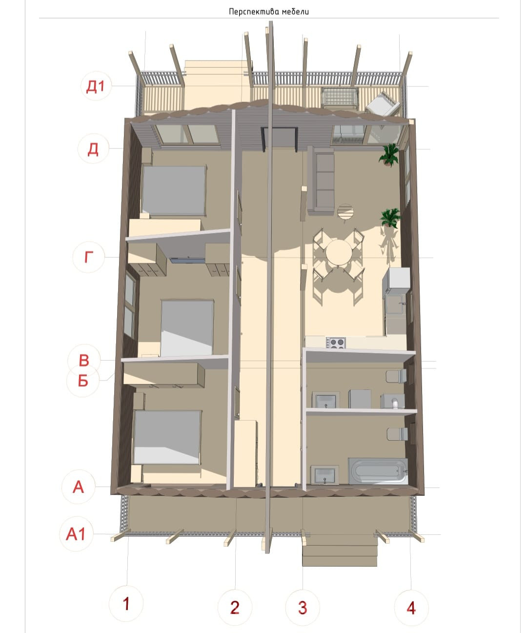 - Две больших террасы и два входа в дом.
