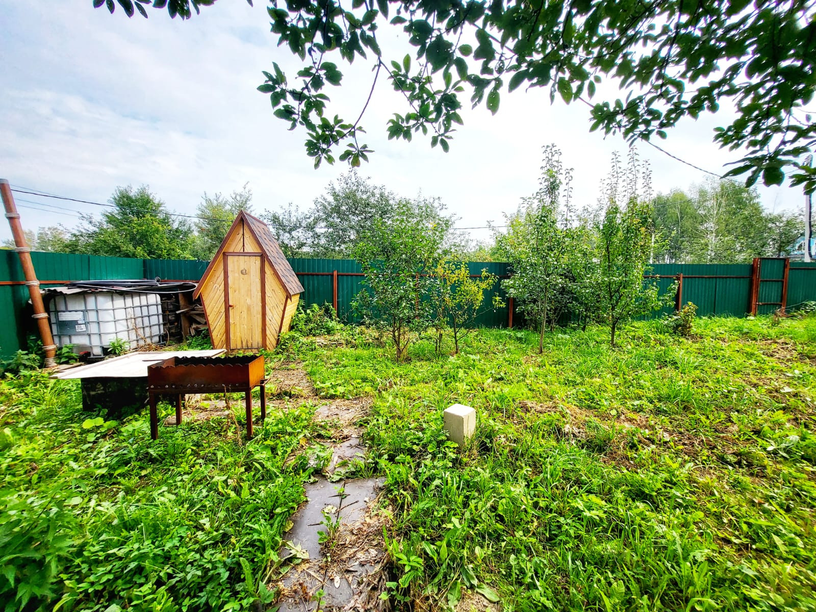 Участок: 6 соток, огорожен со всех сторон забором.