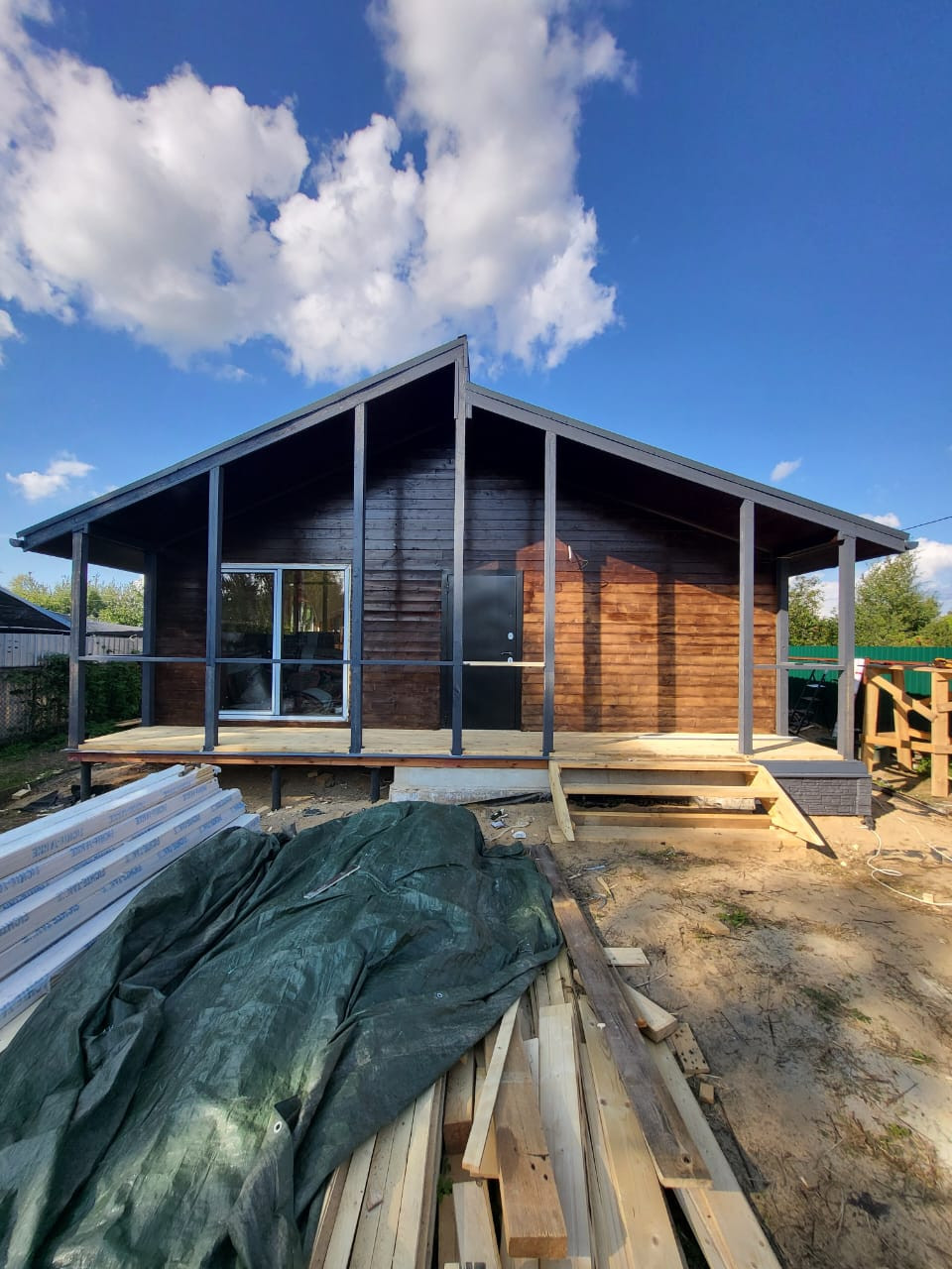 Дом накрыт утеплённой  кровлей.
