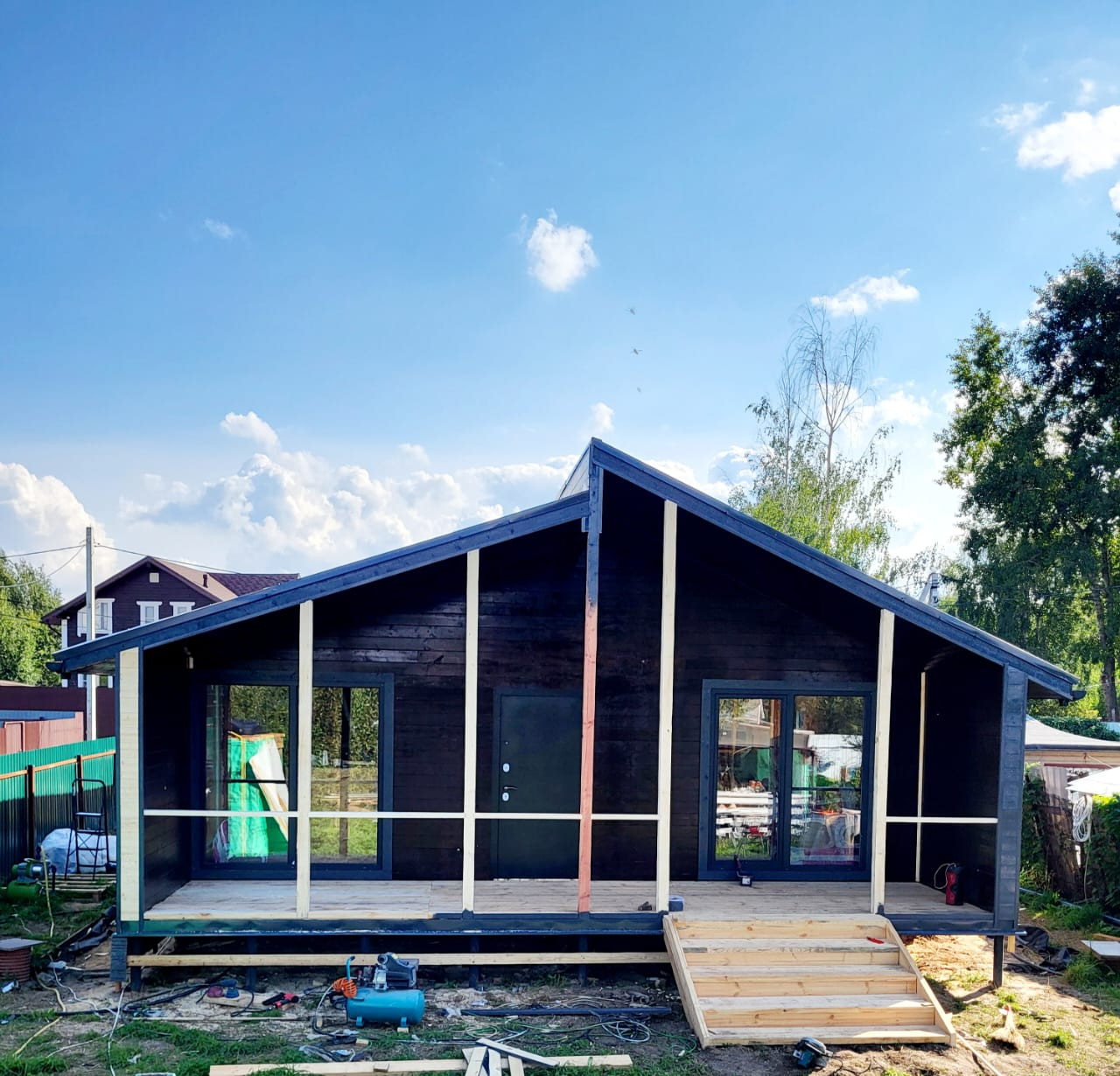 При строительстве дома использовался пиломатериал камерной сушки, обработанный огнебиозащитой.