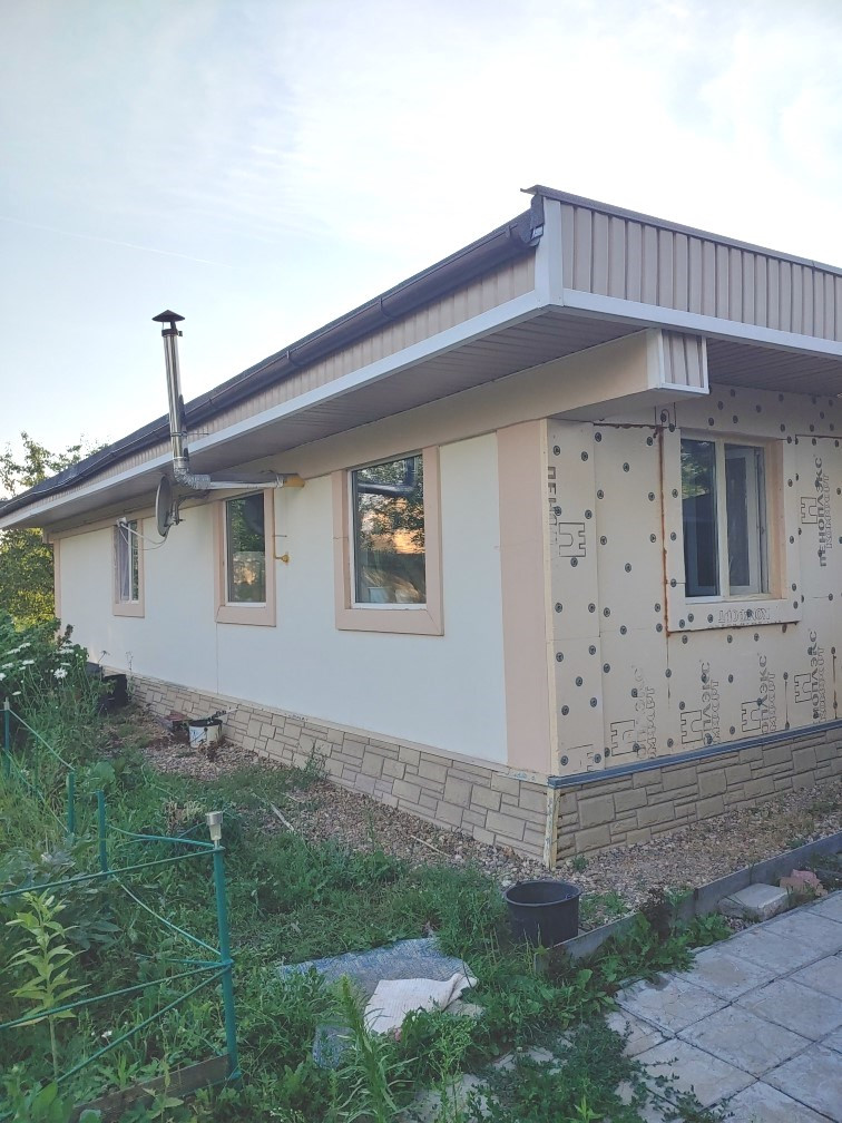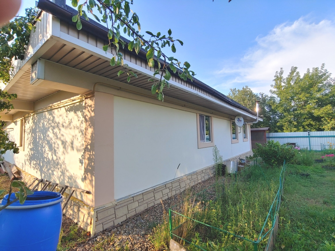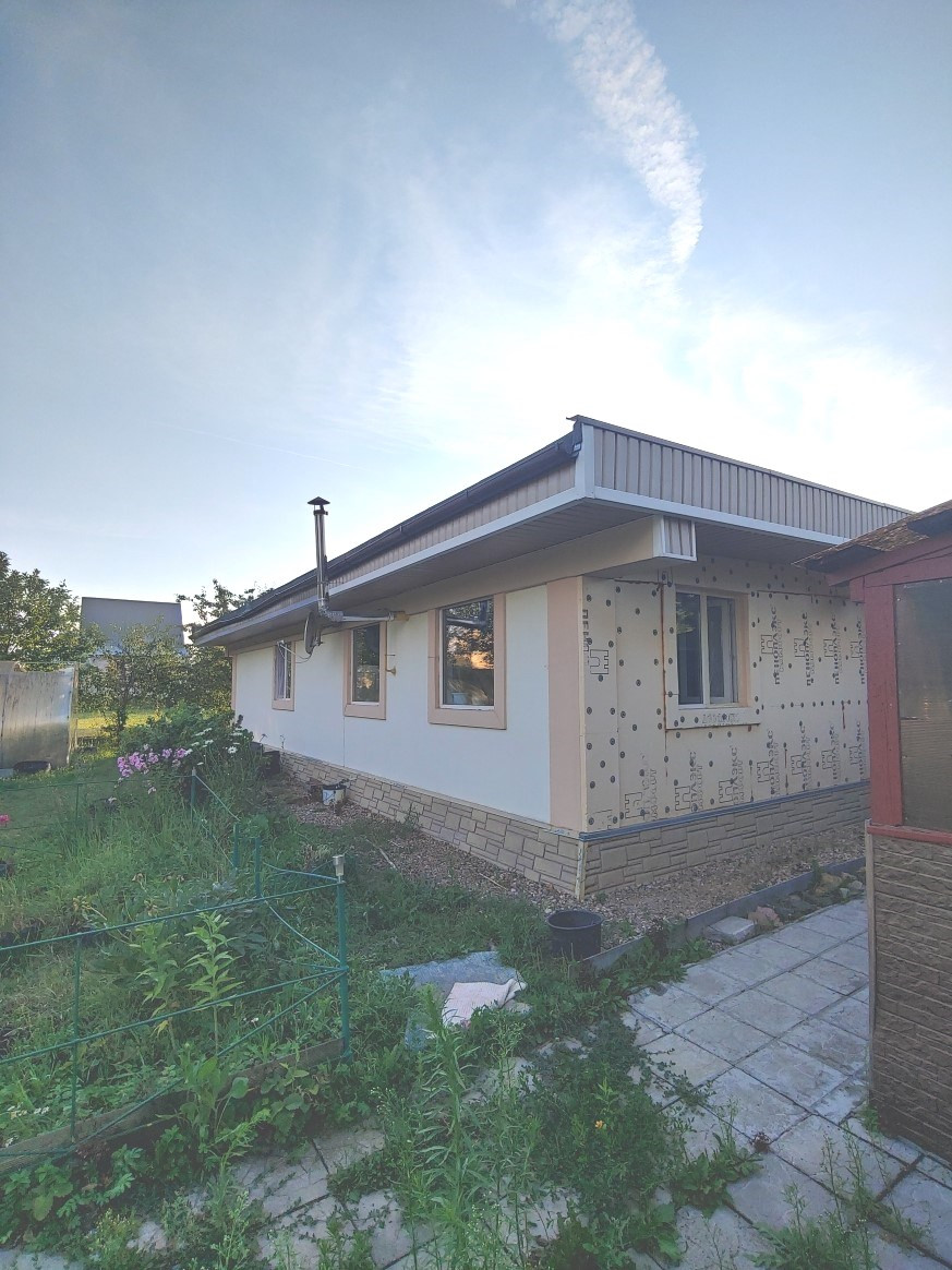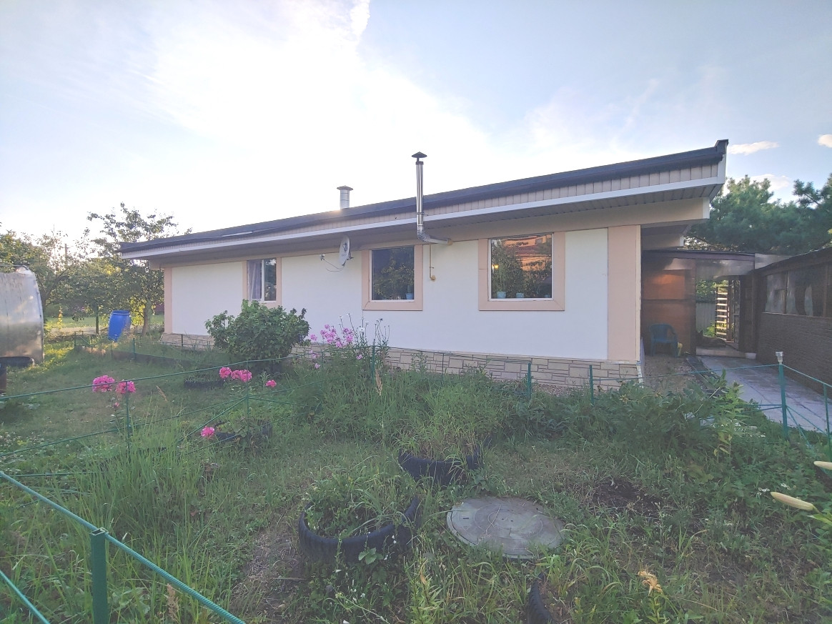 - Д о м (свет, вода, газ, канализация): окончание строительства - 2017 год; общая площадь - 124,8м2, жилая площадь – 78,7 м2 (гостиная – 34,5 м2, спальня – 22,1м2, спальня – 22,1м2), кухня-столовая – 22,1 м2, три санузла с (ванной, с душевой кабиной и туалет) и другие помещения (см схему). Характеристики при строительстве дома: Фундамент – цельная бетонная плита, каркасный , Стены: сендвич из OSB производства Канады и утеплителя, снаружи – штукатурка; Крыша – покрытие Технониколь. Отопление – тёплый пол от газового котла. Канализация – септик. Вода – скважина. Состояние жилого строения – хорошее.