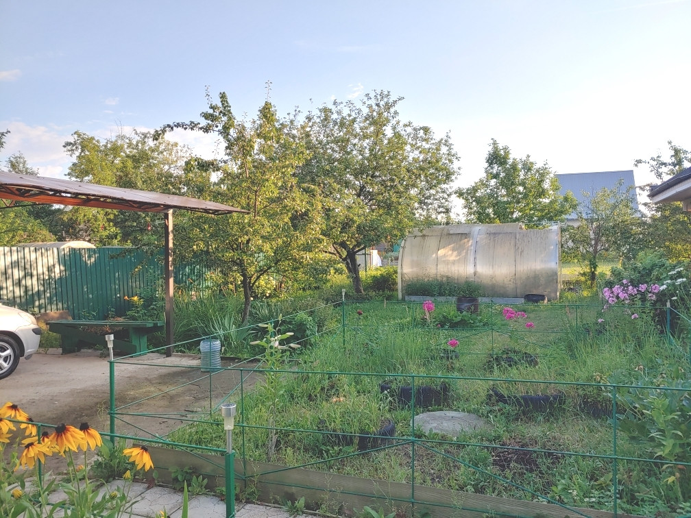 - У ч а с т о к – 6,11 соток, ровный, правильной формы, огорожен. Площадь – 6,11 соток. Категория земель: Земли населённых пунктов, Виды разрешенного использования: для ведения гражданами садоводства и огородничества, для садоводства. На участке : газон, цветы, плодовые кустарники и деревья, теплица, три хозяйственные постройки, парковочное место под навесом.