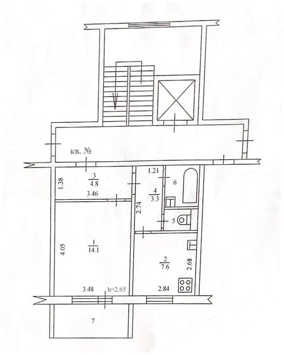 Высота потолков 2.65 м