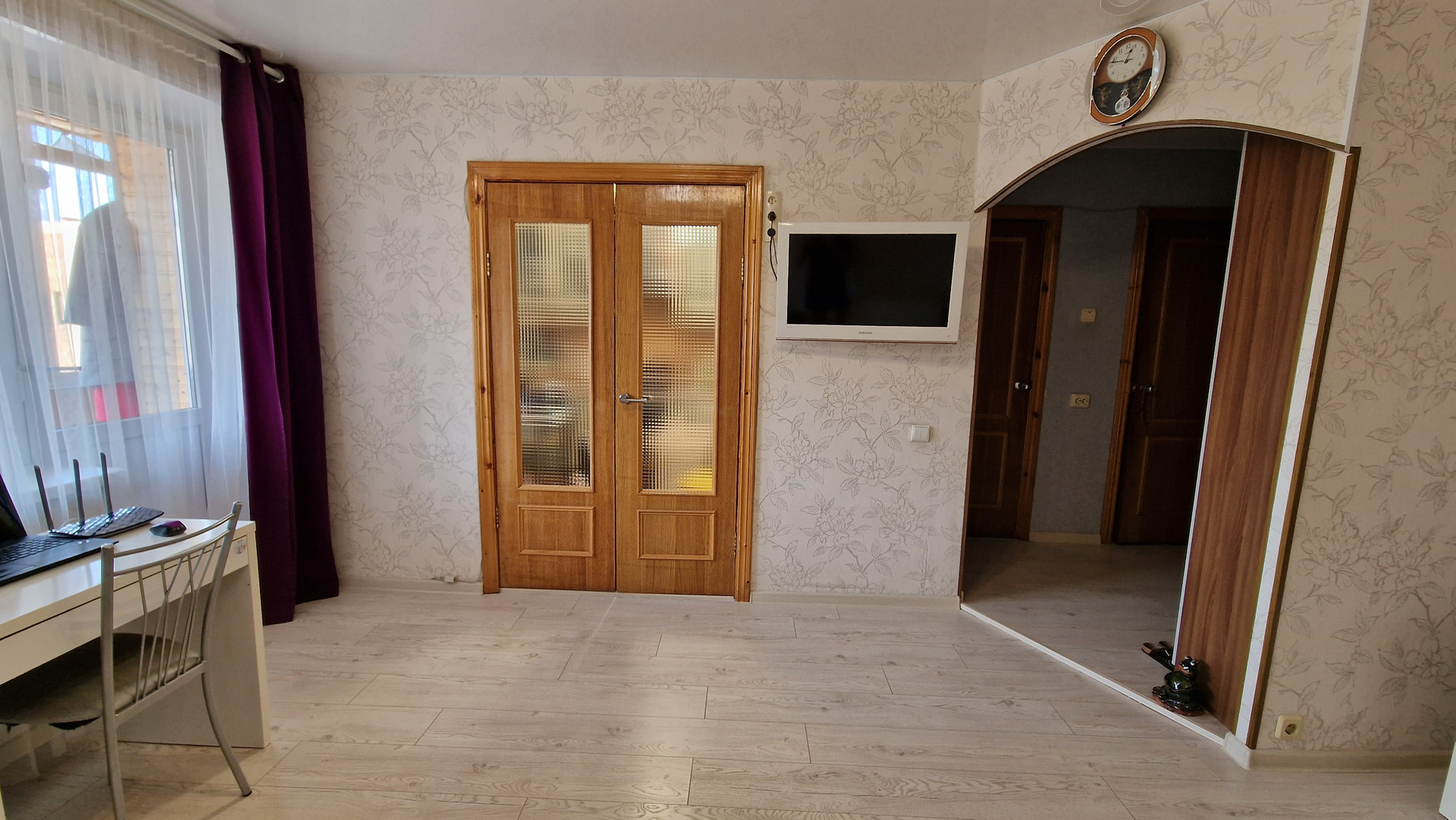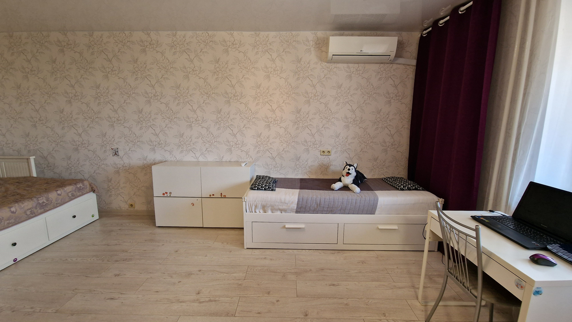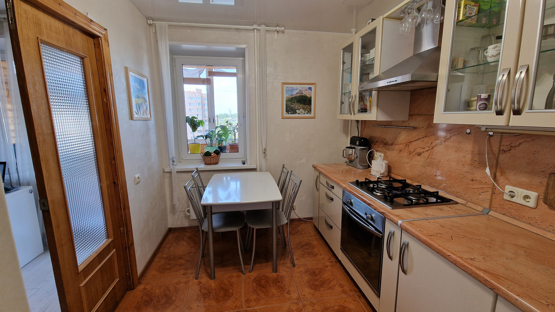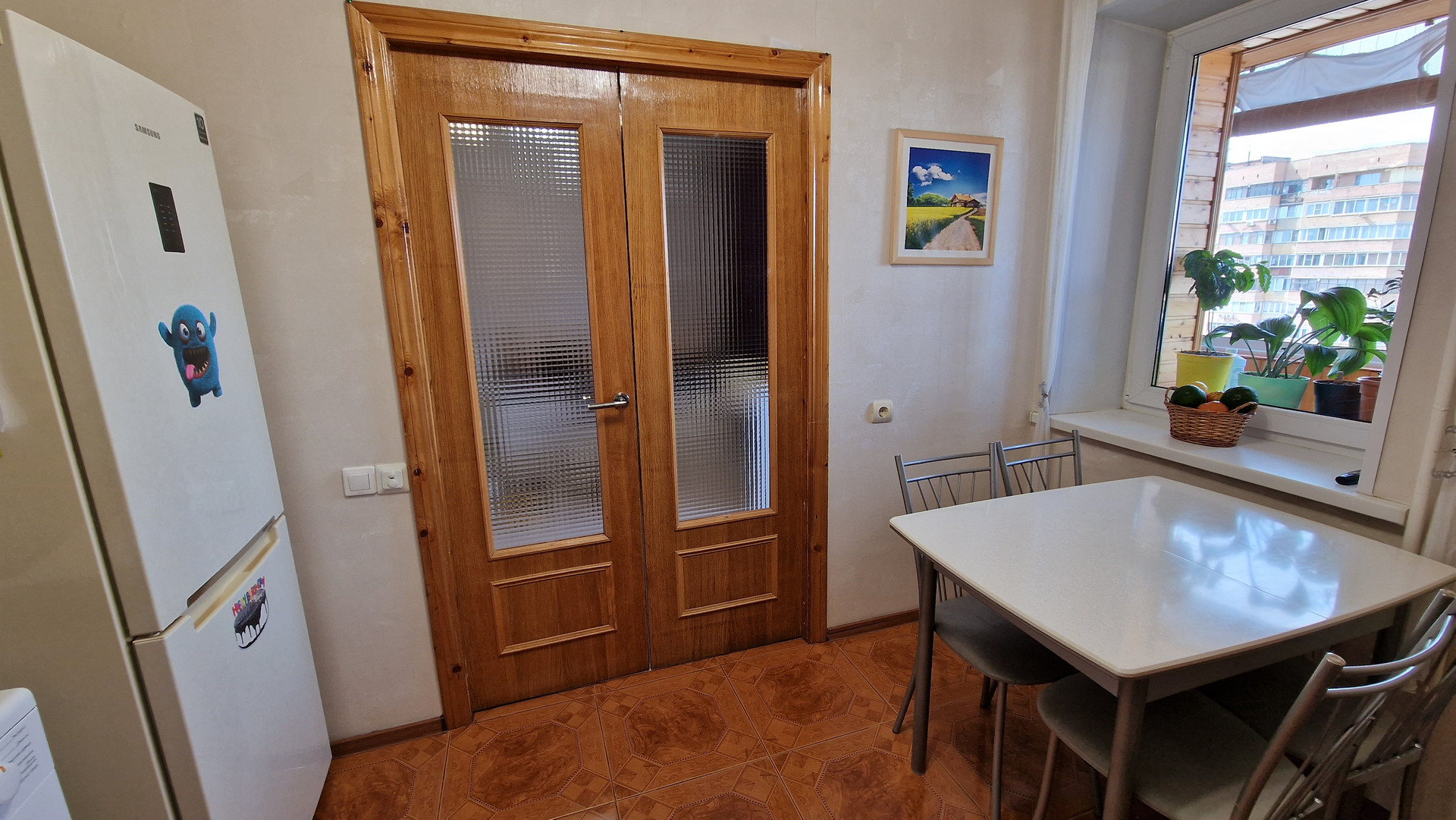 Сам дом очень тёплый. Весь год ходили дома в шортах и майках (даже зимой). В квартире большая 6-метровая лоджия. Всё, что на фото, оставляем в квартире. Из мебели: кухонный гарнитур, шкафы ПАКС, шкафы на балконе и шкафчики в ванной. Из техники: варочная панель и духовка Ariston, холодильник Samsung, микроволновая печь Panasonic, кондиционер LG.