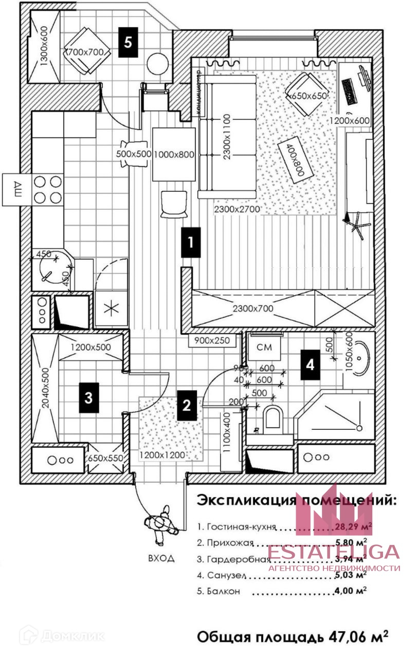 Общая площадь 47 м2