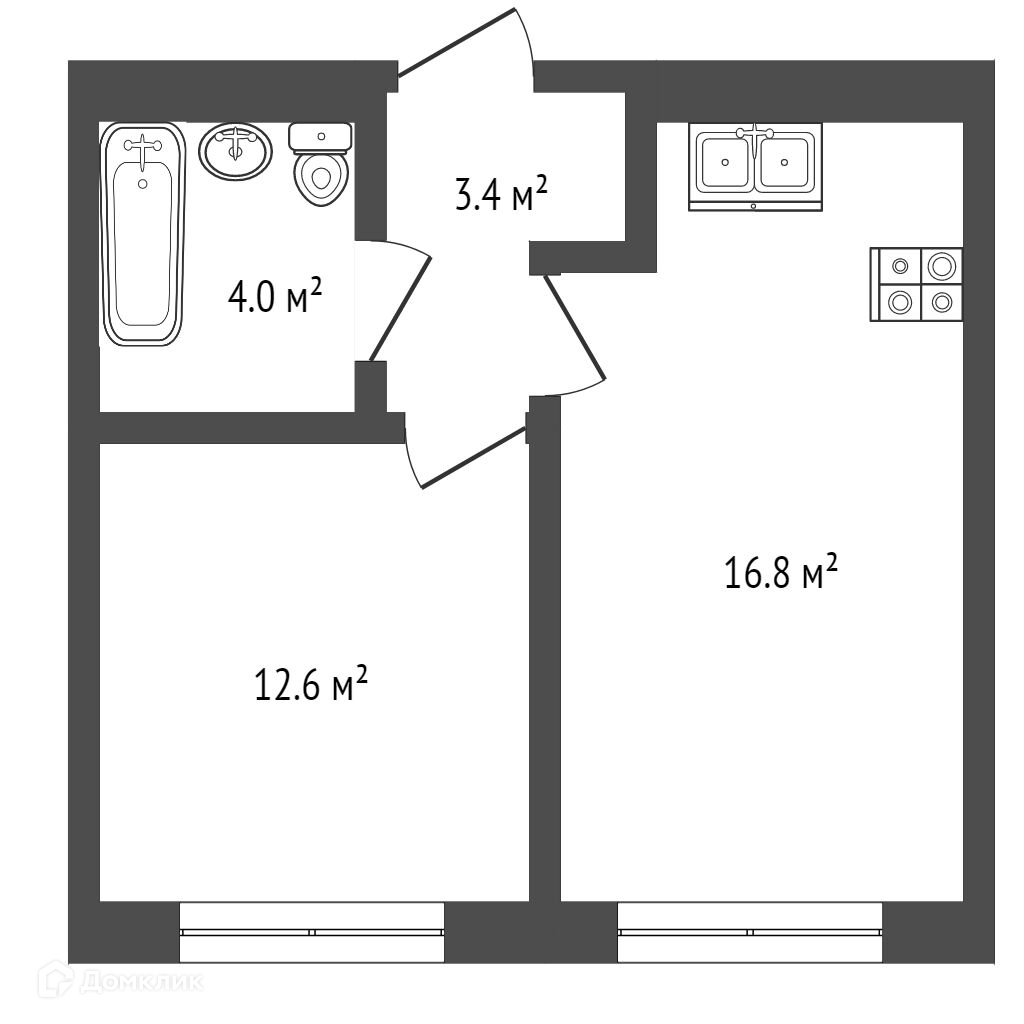 Общая площадь 36.8 м2