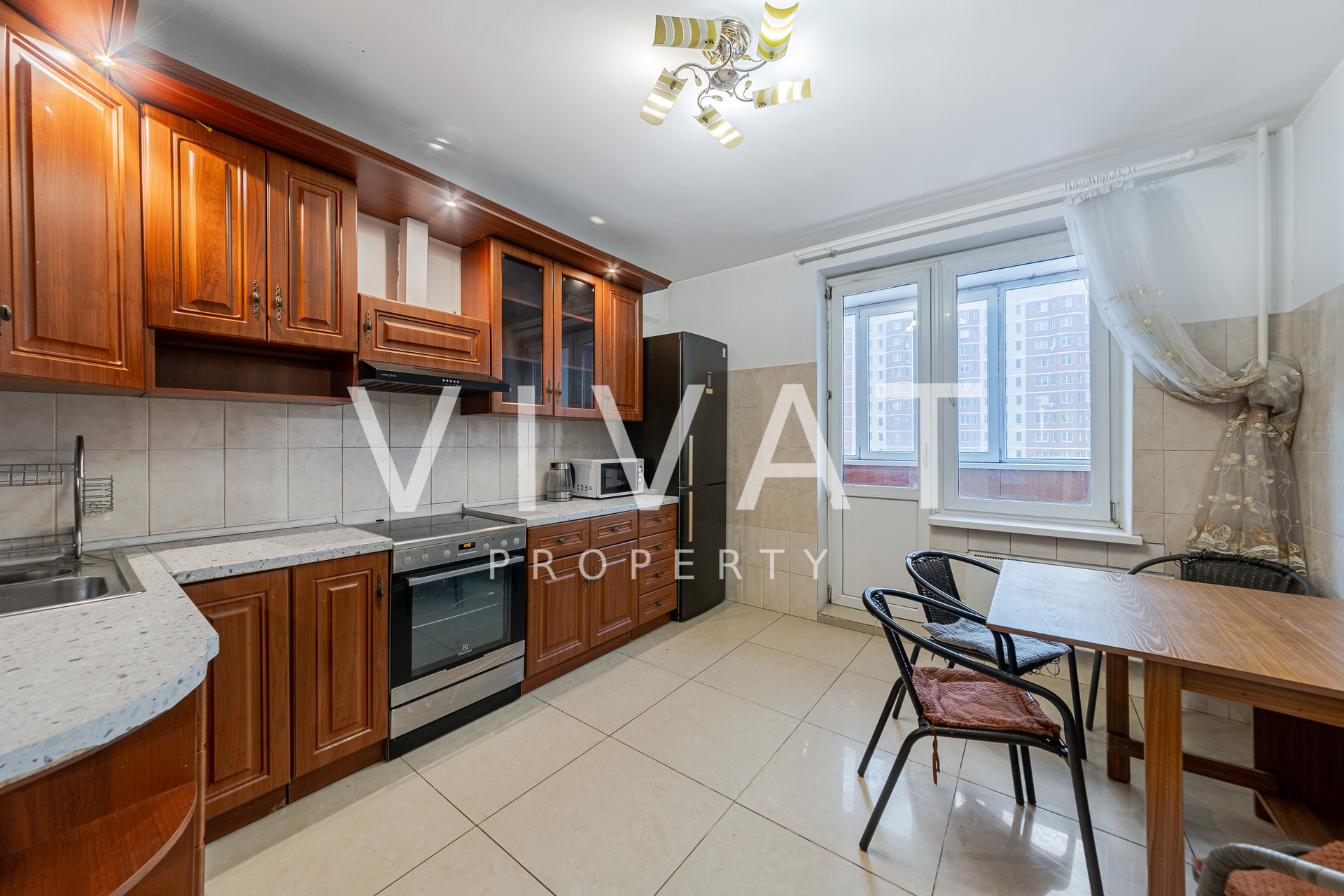 Квартира полностью укомплектована и готова к Вашему проживанию. Кухонный гарнитур с плитой с варочной панелью и духовым шкафом. Холодильник производителя Bosch.  Мягкая мебель. Стиральная машина.