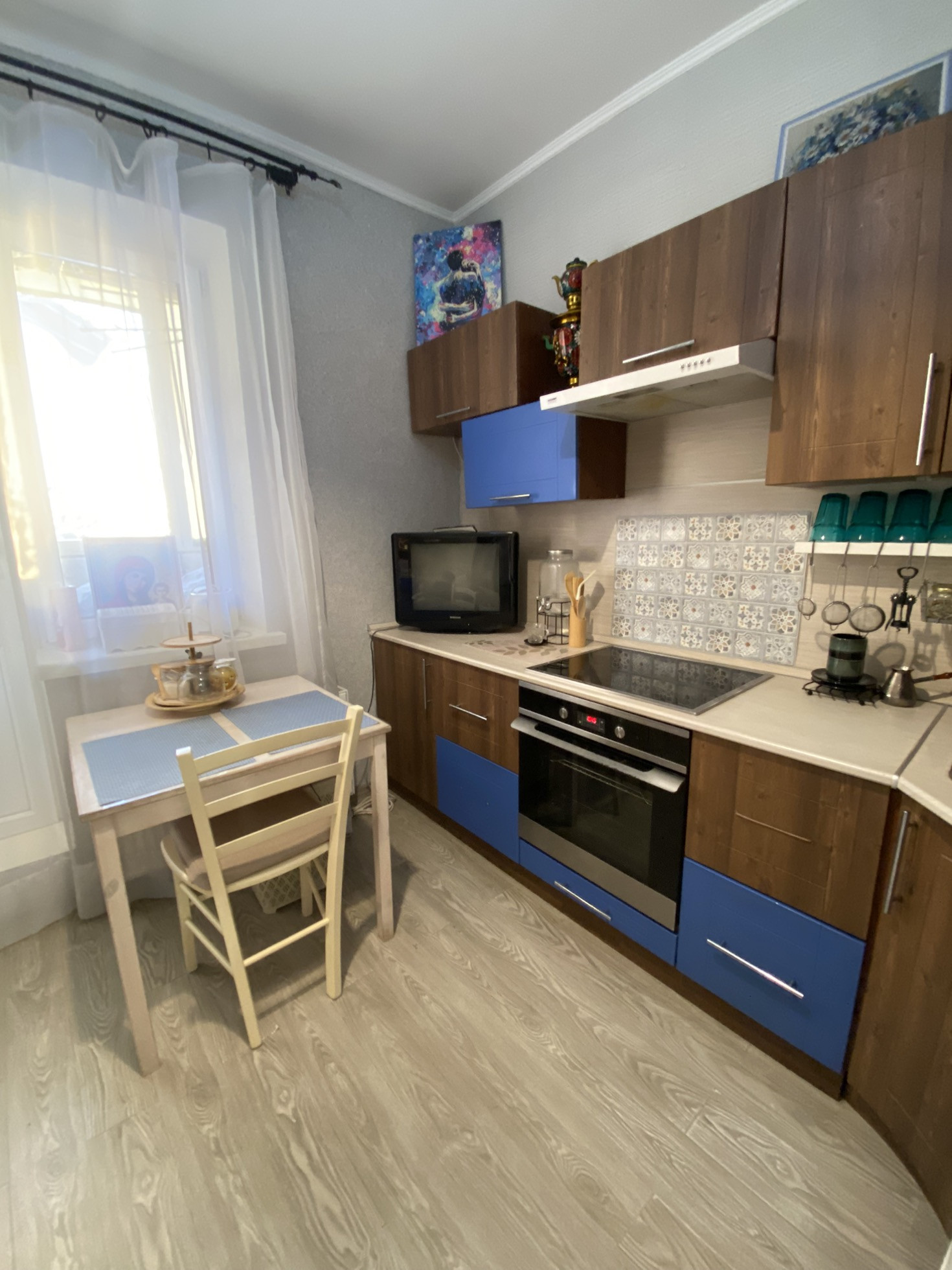 О квартире: Чистая, ухоженная. свежий ремонт в комнате и кухне. Застекленная лоджия, качественный ремонт в туалете и ванной. Так же в комнате рабочий кондиционер. Остаётся кухня и встроенная техника ( плита и духовка), буфет.  шкаф в коридоре и стенка с угловым шкафом  в комнате.