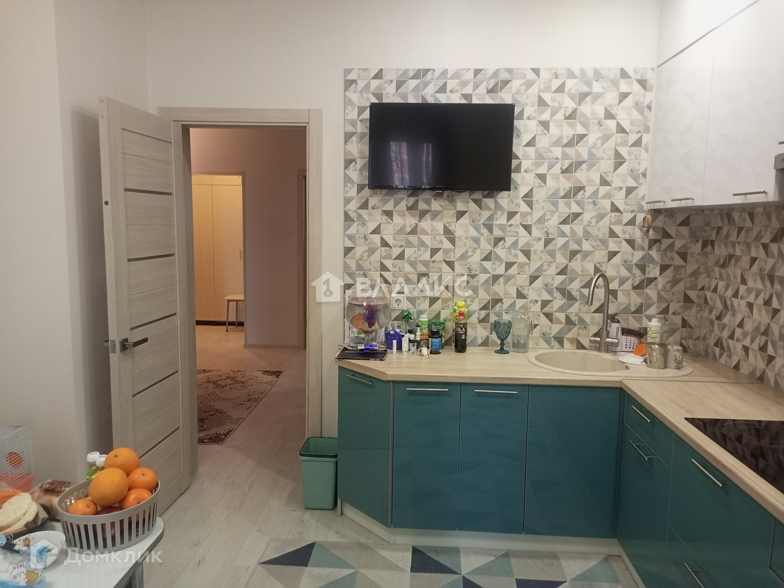 Большая 2 комнатная квартира распашонка. Мебель остается практически вся. Ремонт сделан недавно. Установлен бойлер на случай отключения воды, что очень комфортно на этот период. На кухне современный кухонный гарнитур со встраиваемой техникой. Установлен фильтр для очистки воды осмос. Стильный и функциональный холодильник.  Комнаты и коридор оснащены большими вместимыми шкафами-купе. Две лоджии на обе части дома.