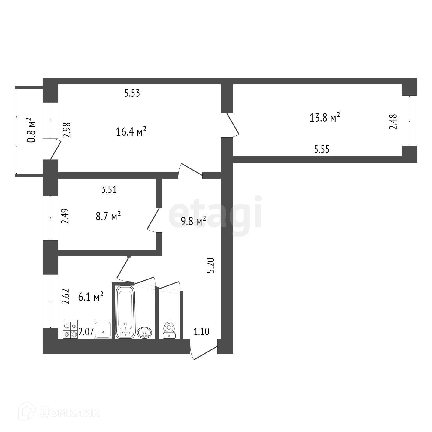 Общая площадь 57.8 м2