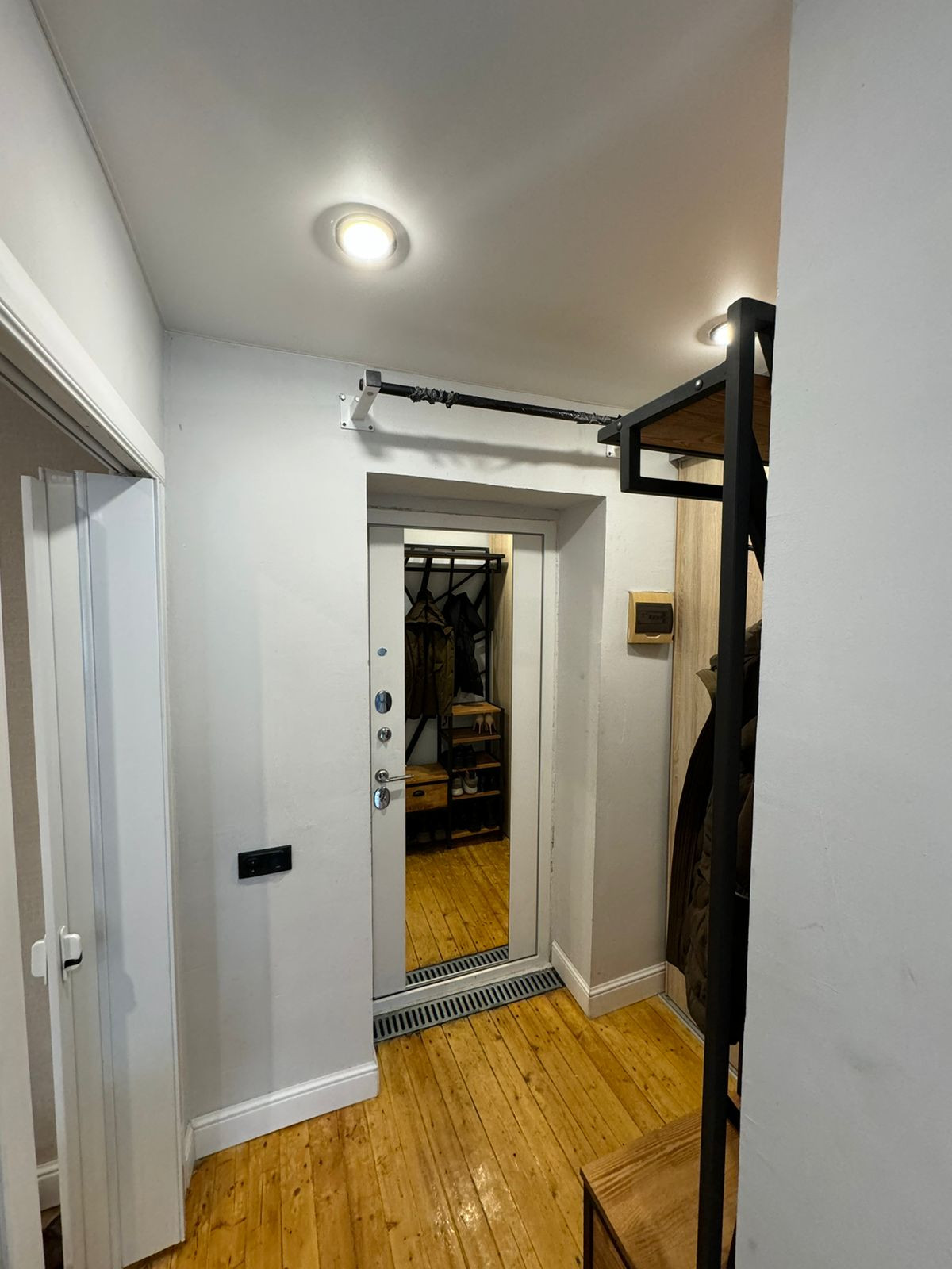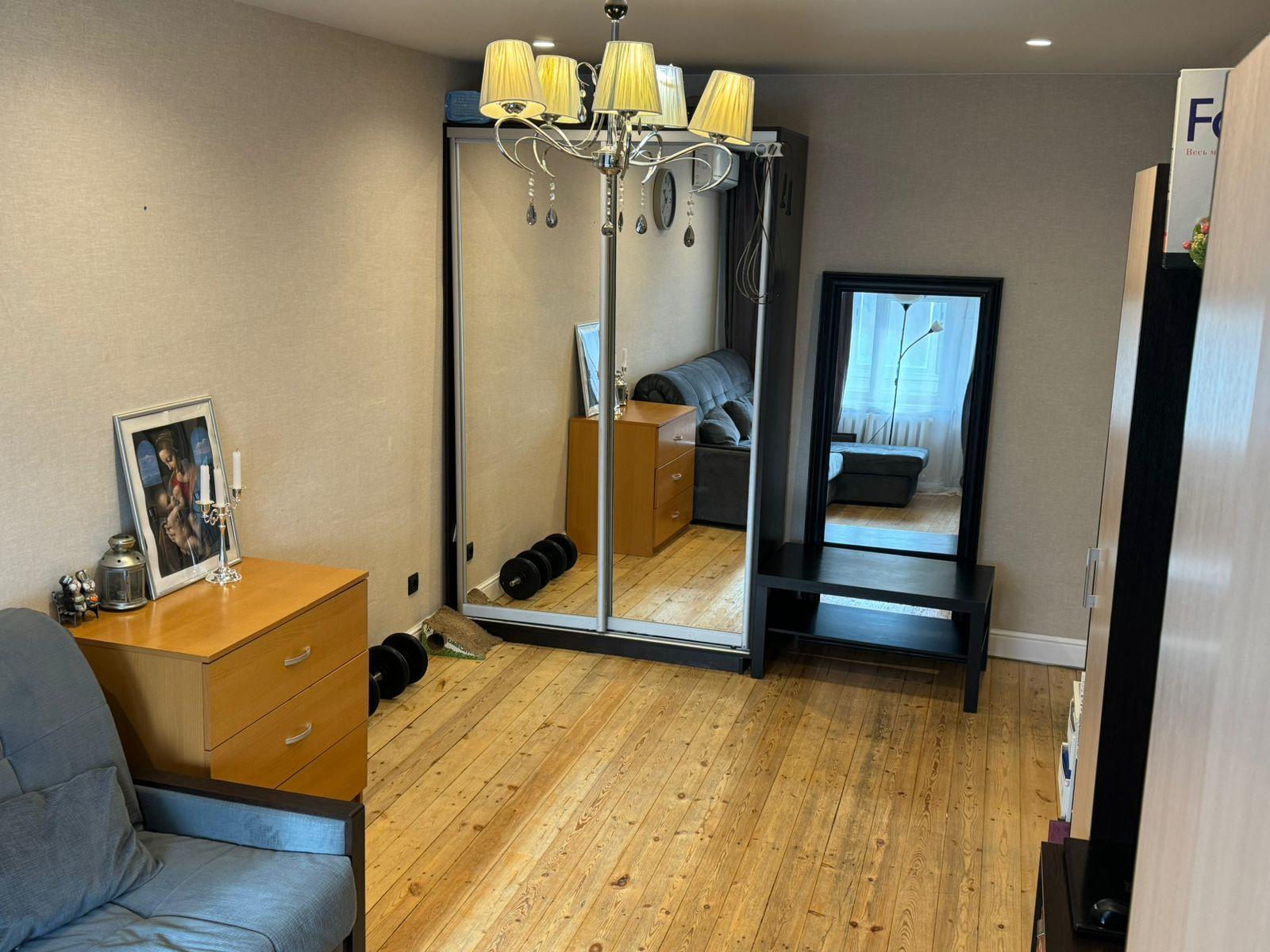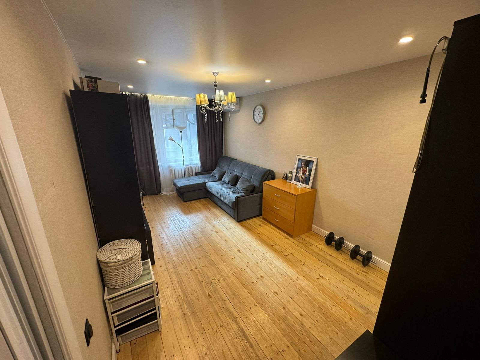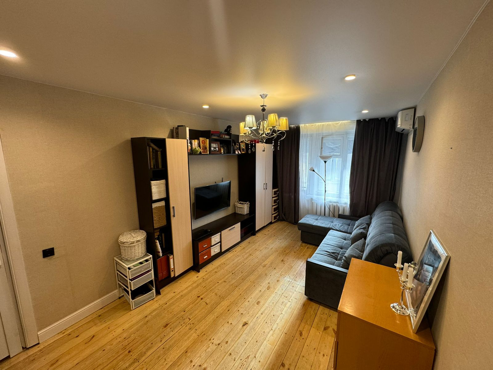Ремонт делали для себя. Новая дорогая входная дверь. С/у  полностью гидроизолирован, поменяны трубы, новые счетчики учета, немецкая сантехника, немецкие смесители. Навесные потолки со встроенным светом. Сделана новая электропроводка. При продаже остается: встроенная кухня с новой техникой, встроенный шкаф в прихожей, кондиционер (с возможностью обслуживания, доступ с балкона)
