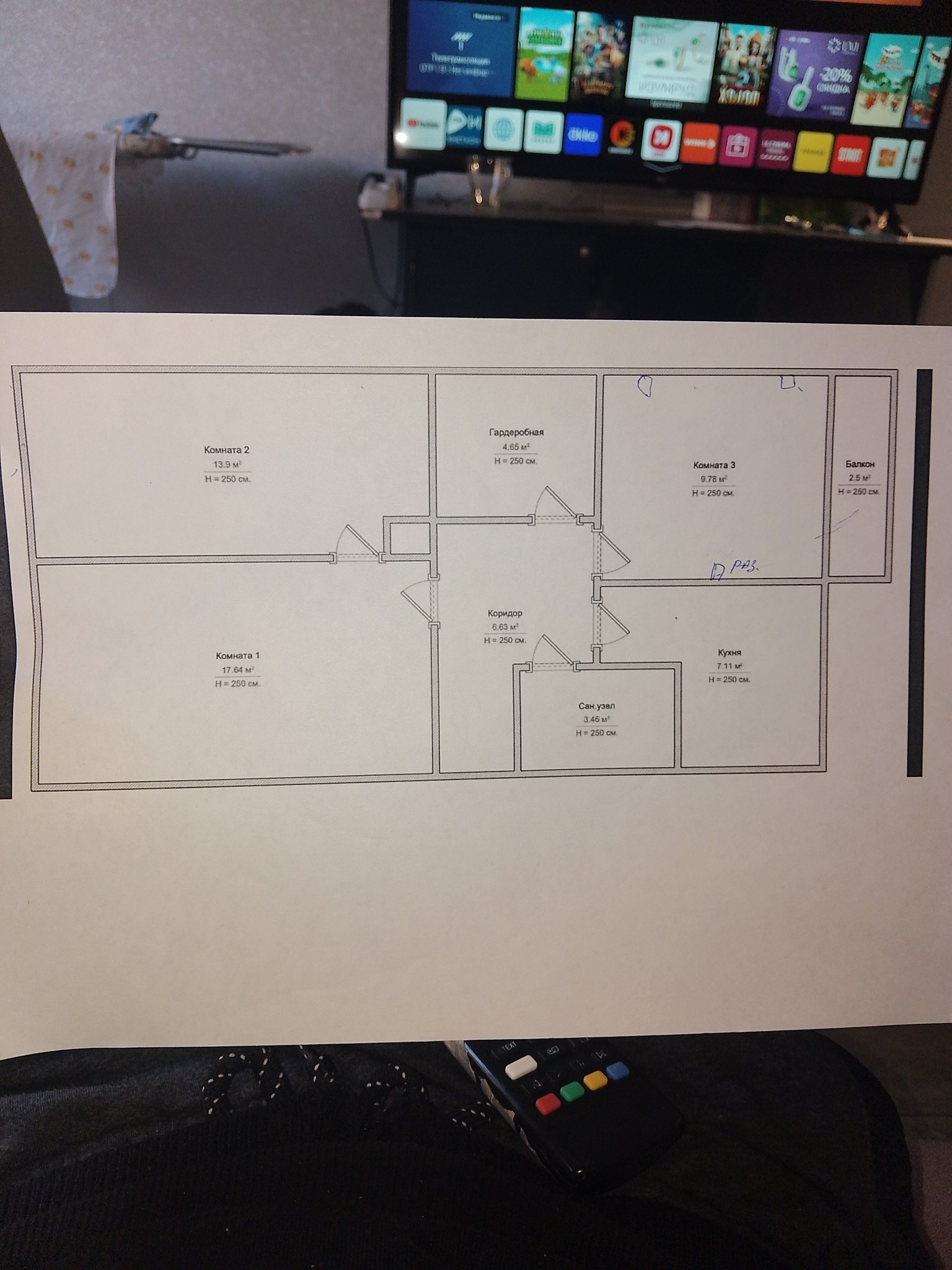 Высота потолков 2.5 м
