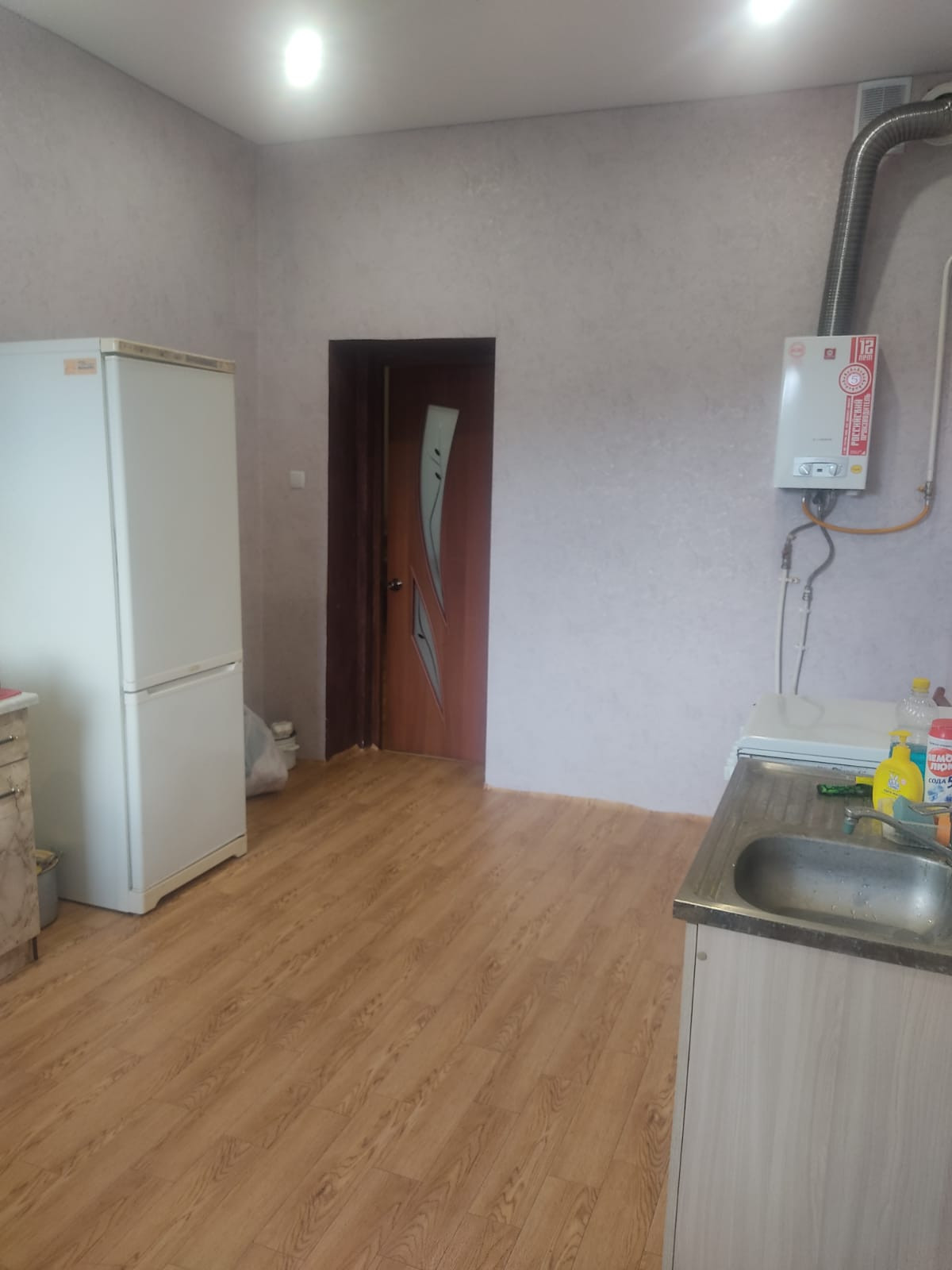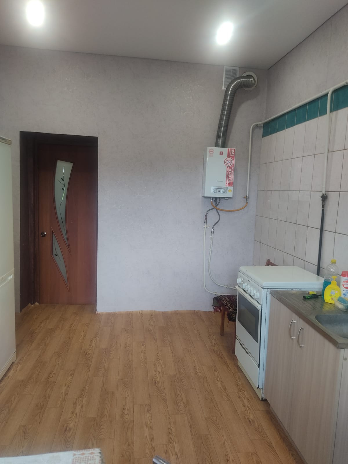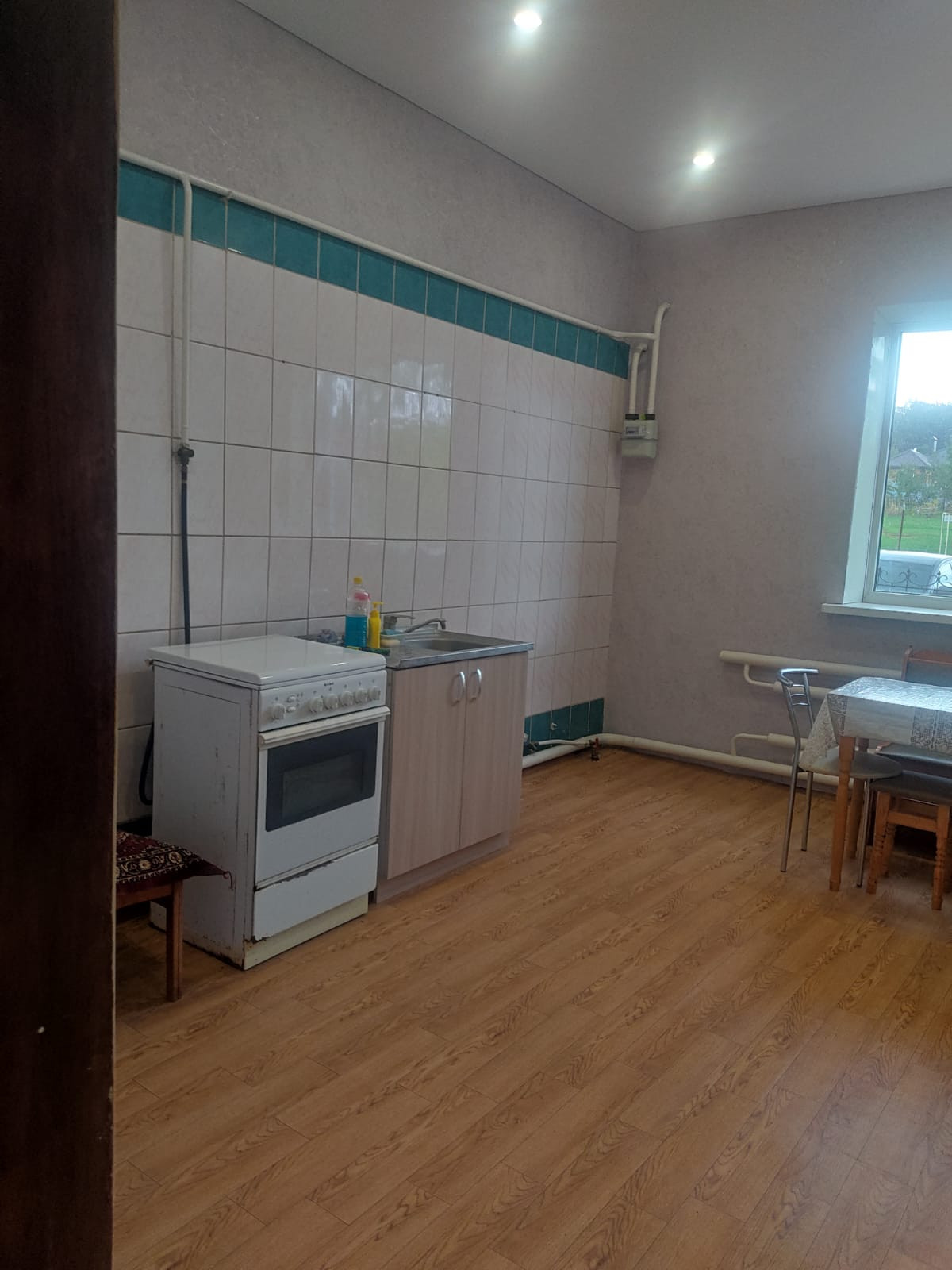 На первом этаже дома расположены: две жилые комнаты, очень просторная кухня (15 кв.м.), холл, раздельные удобства и бойлерная.