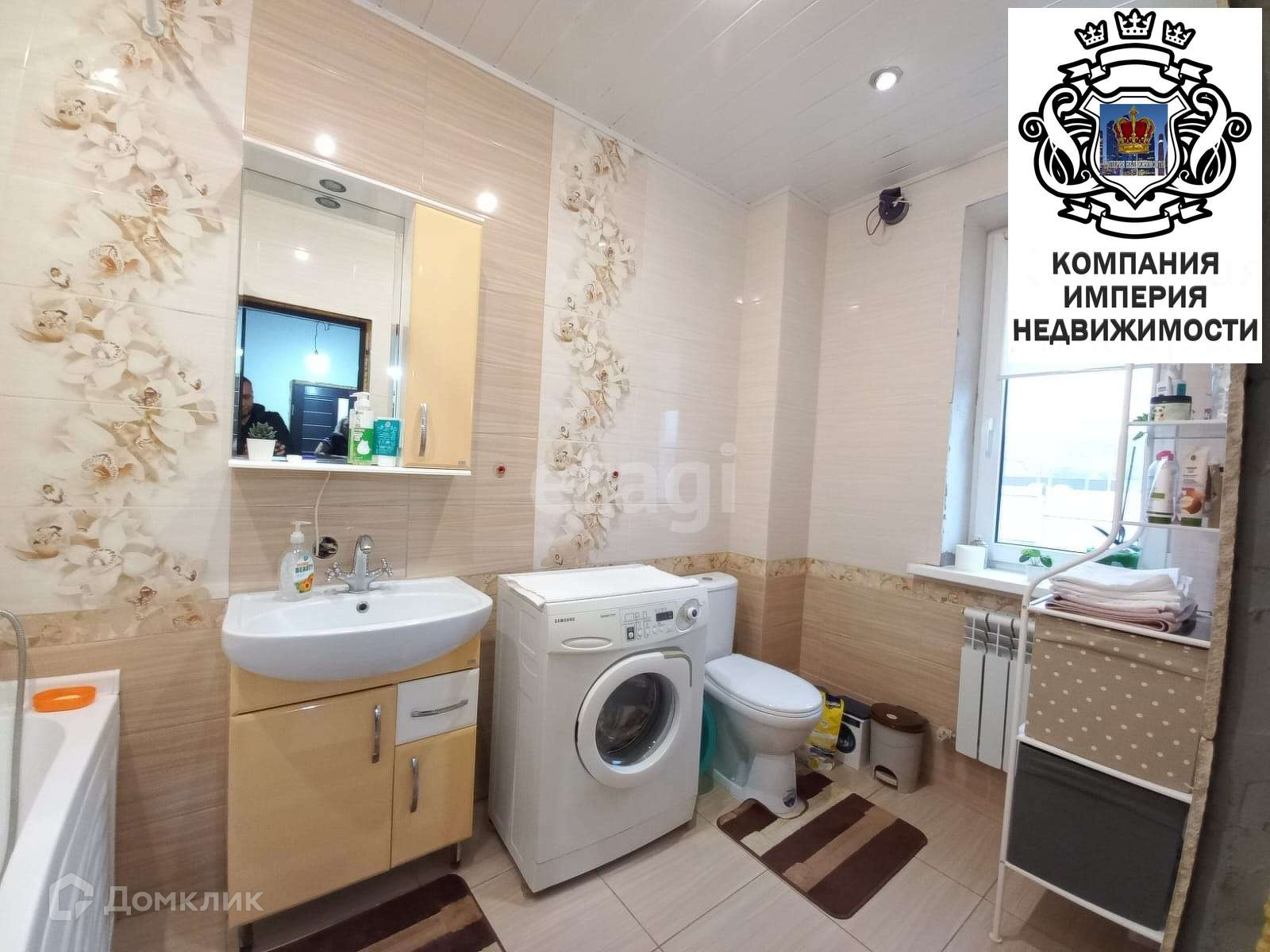 - просторный совместный сан узел в кафеле,