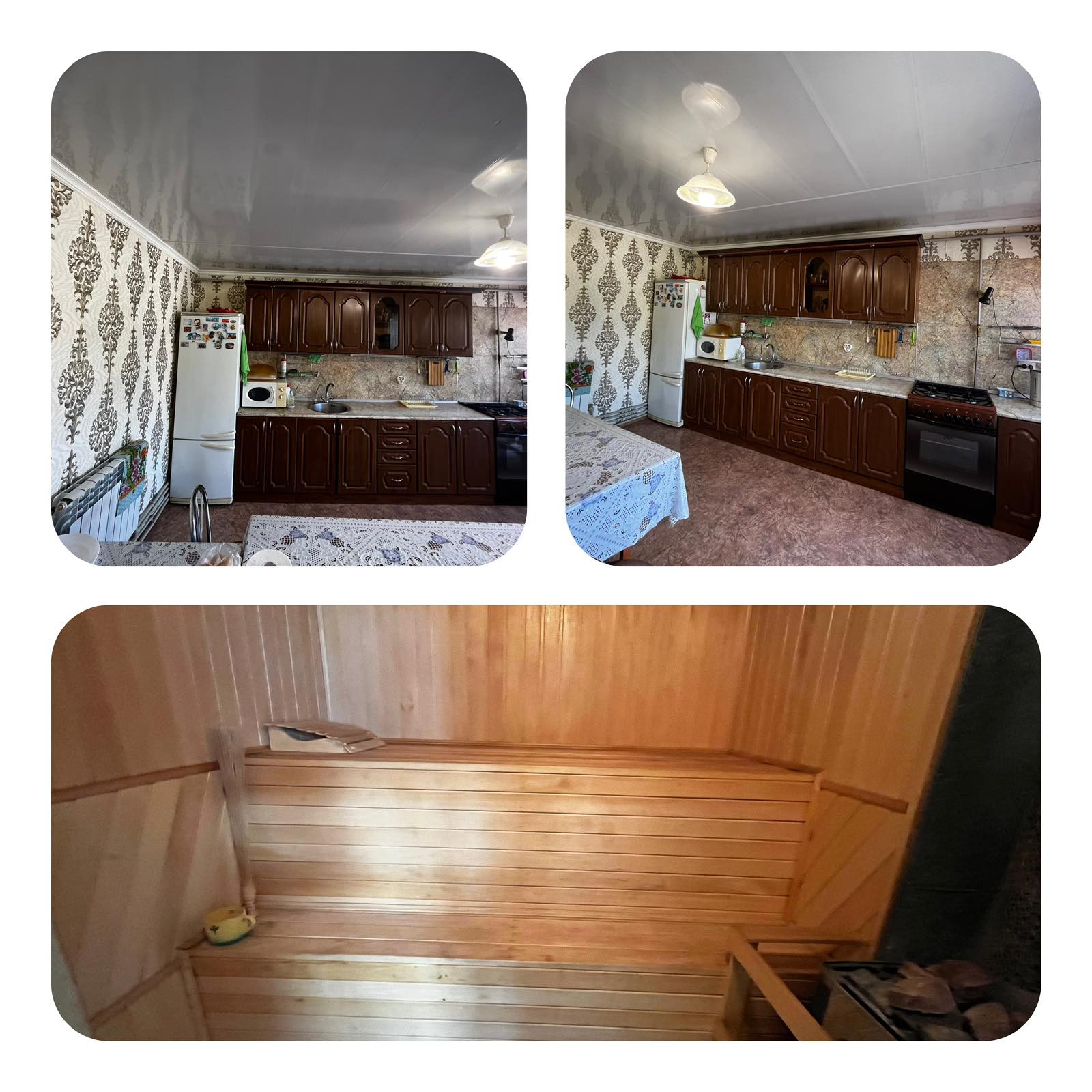 -В основном доме 98 квадратных метров сделан качественный ремонт, встроенная кухня, бойлерная, просторная прихожая, сан узел совмещен.