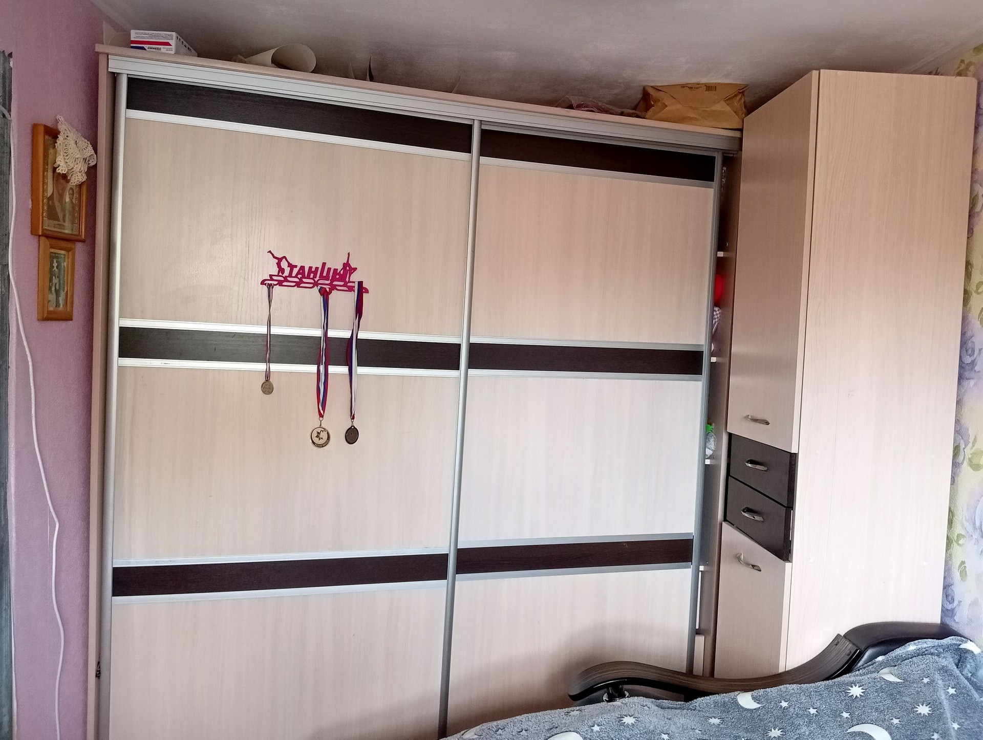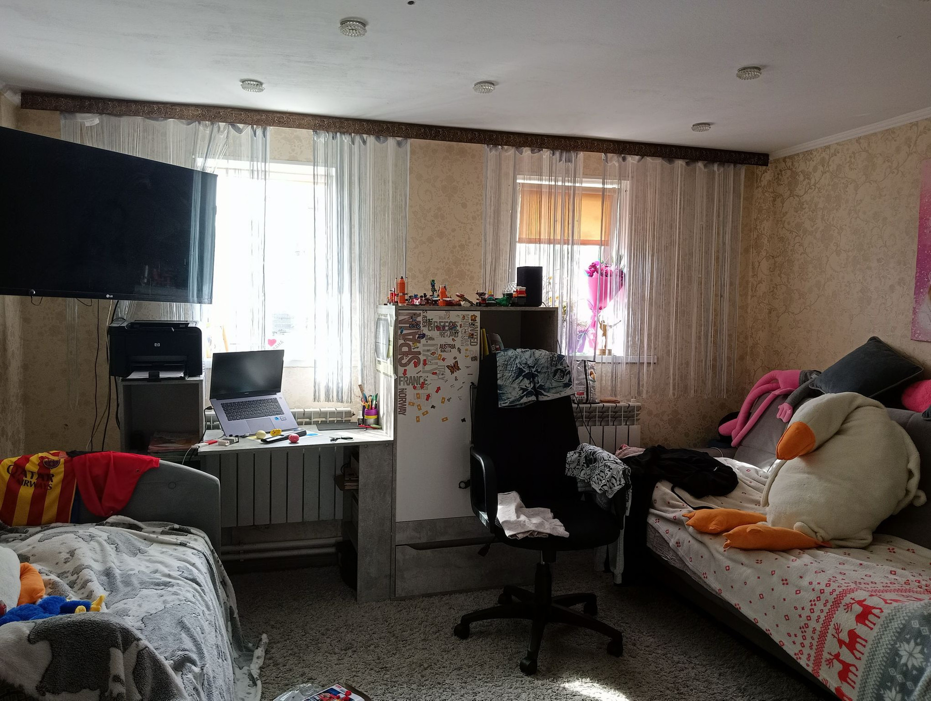 Проделан косметический ремонт: окна ПВХ,полы и потолки ровные,недавний ремонт.