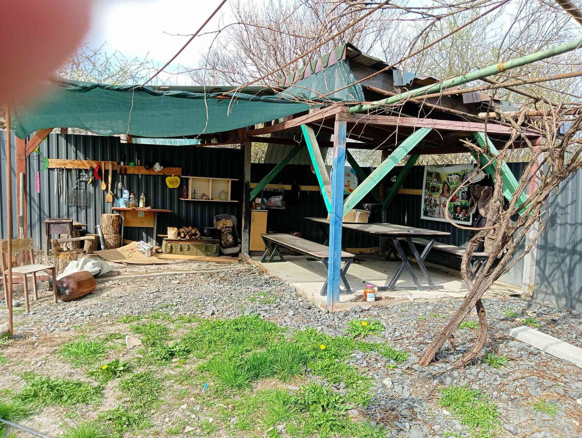 Имеется гараж со смотровой ямой ,хоз.постройка,летом используется,как летняя кухня.