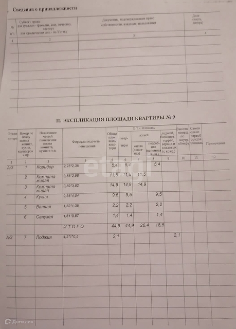 Общая площадь 44.9 м2