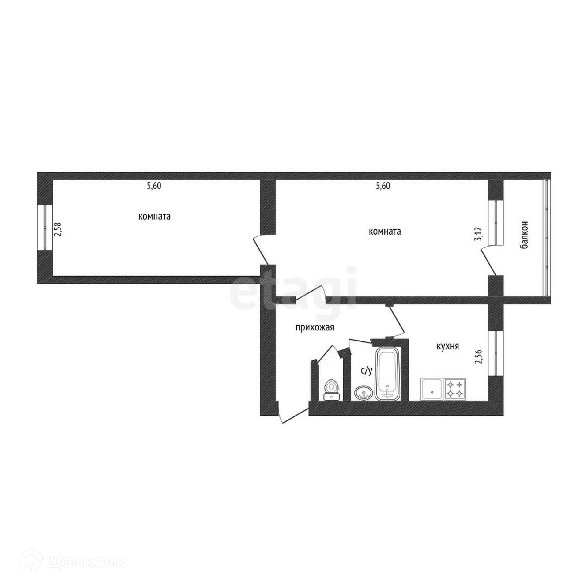 Общая площадь 44 м2