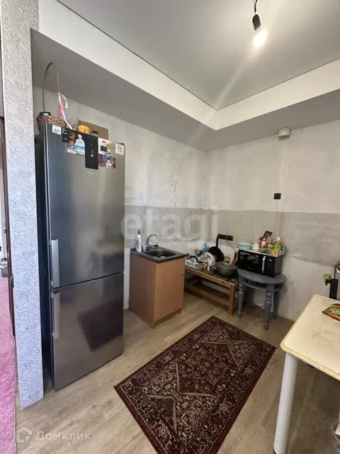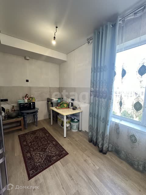 - просторная кухня-гостиная, потолок натяжной, пол - кварцвиниловая плитка;