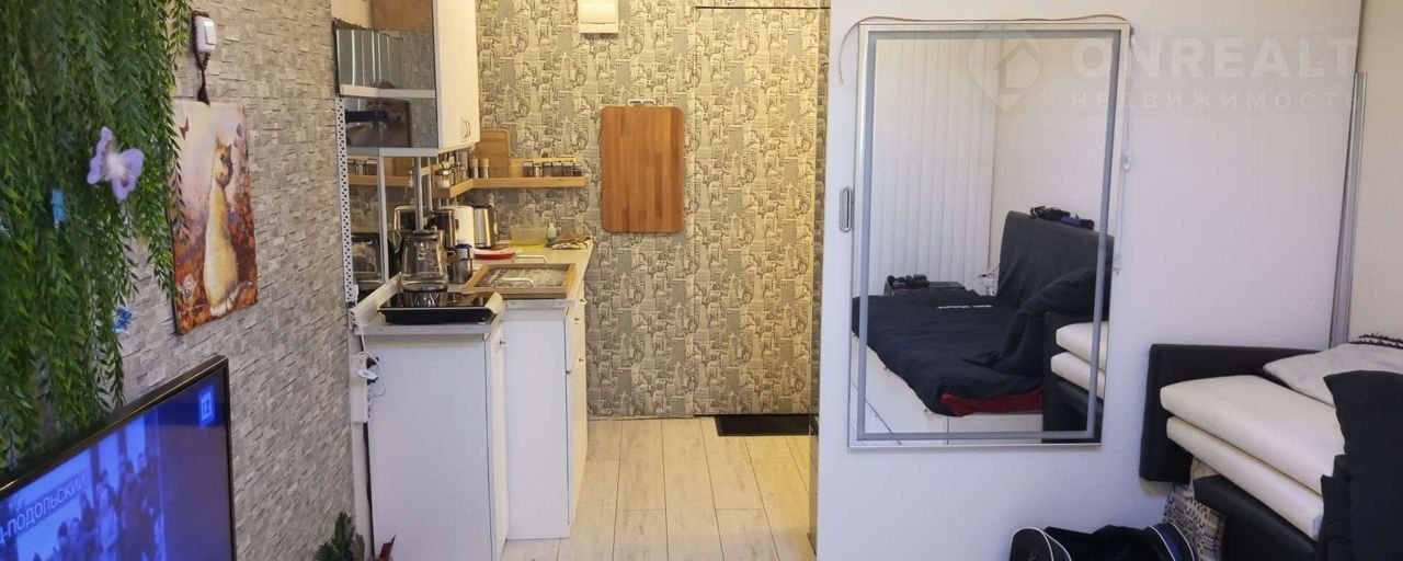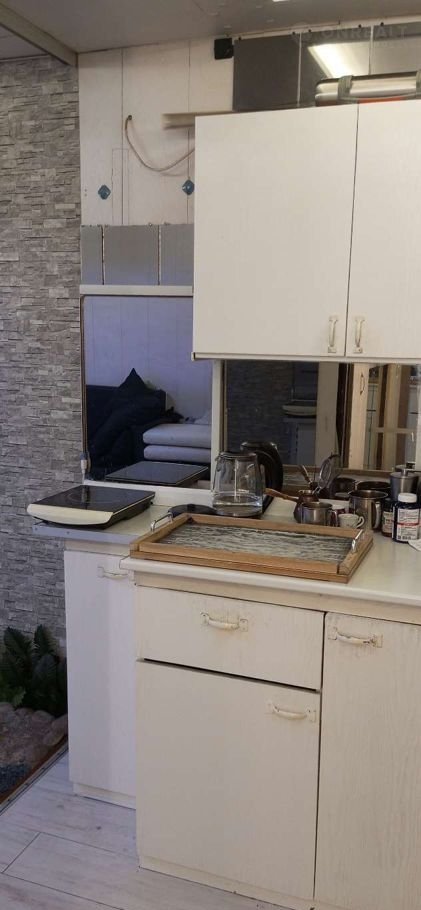 Комната в общежитии. Ремонт в стиле хай-тек максимальный минимализм. Самодельный функциональный диван с тремя выдвижными ящиками, самодельный кухонный стол с тремя объёмными секциями, небольшой холодильник.Туалет отдельный на три комнаты подведена вода установлена раковина. Личная стиральная машинка. Душевая на этаже. Хорошие спокойные соседи, половина семейные с детьми, пьющих на этаже нет.