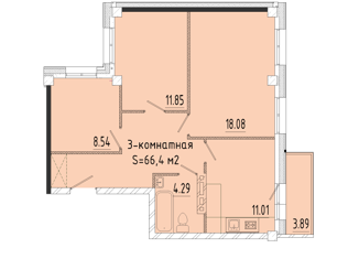 Общая площадь: 66.3 м2